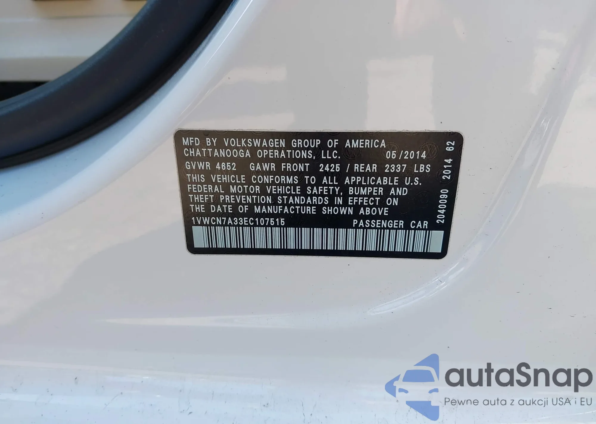 The car Volkswagen Passat 2014 (VIN 1VWCN7A33EC107515) has not been auctioned before. The documents are clean, and the mileage matches or is below the market average. Sold by an insurance company – we recommend purchase. Delivery to the port will take approx. 6–8 weeks.