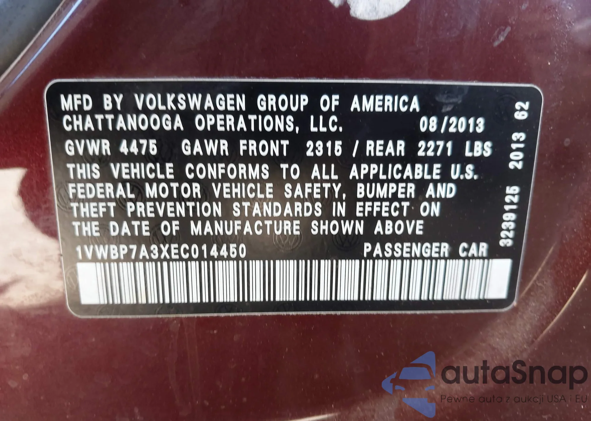 • VIN: 1VWBP7A3XEC014450