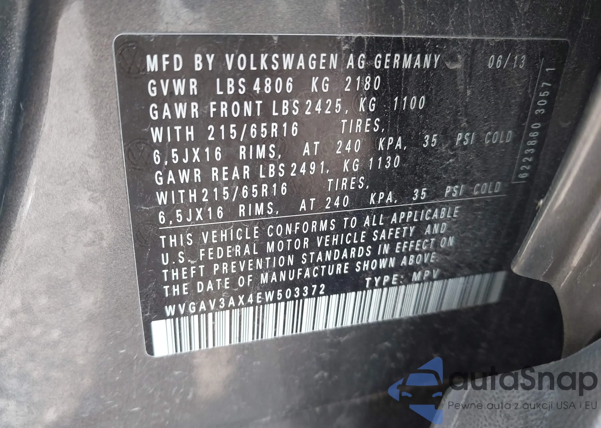 • VIN: WVGAV3AX4EW503372