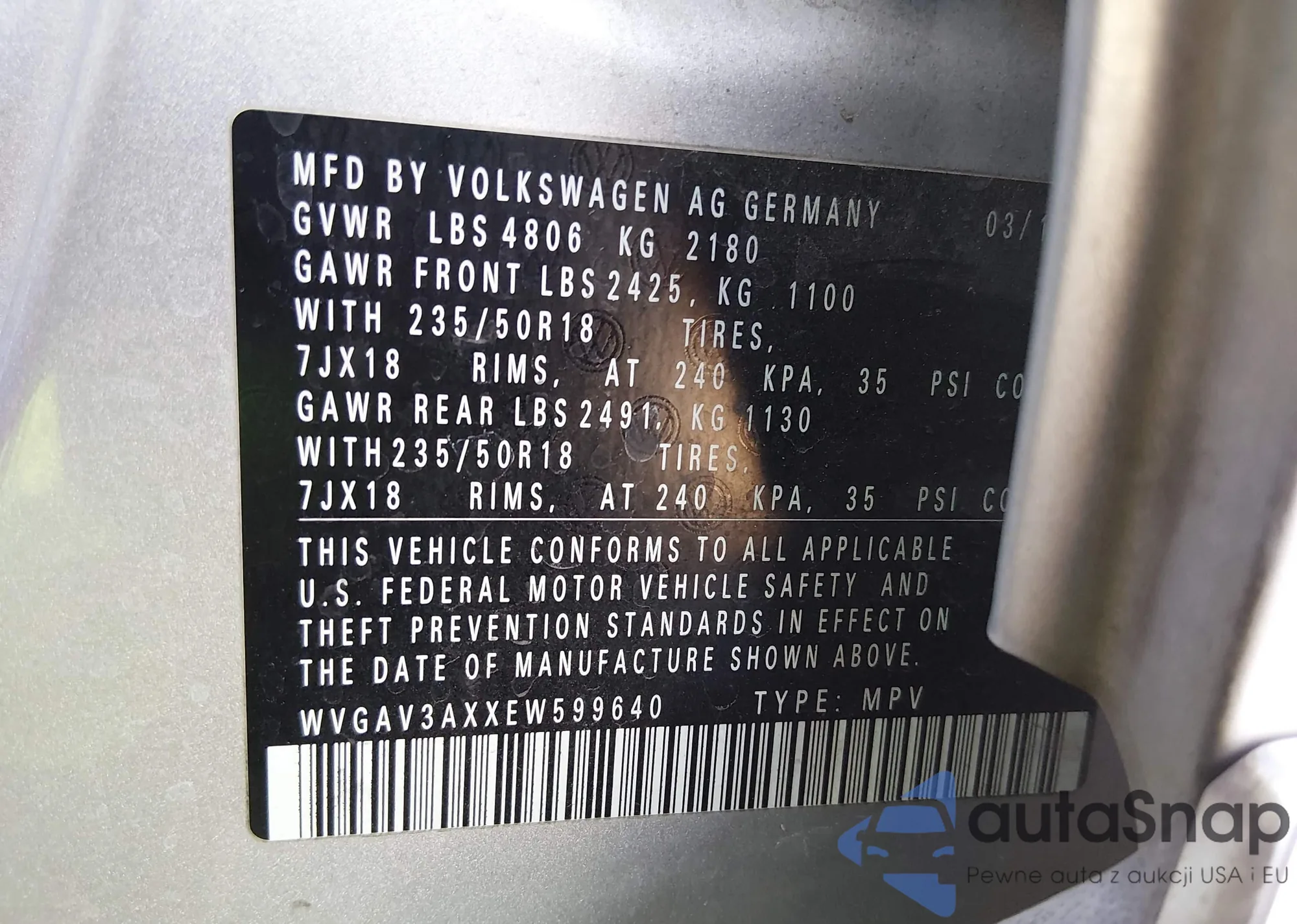 • VIN: WVGAV3AXXEW599640