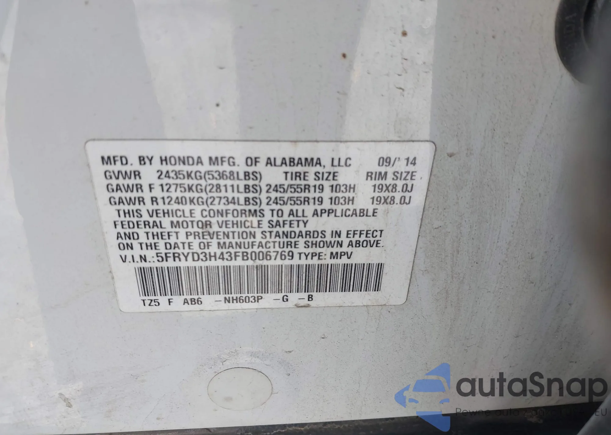 The car Acura MDX 2015 (VIN 5FRYD3H43FB006769) has not been auctioned before. The documents are clean, and the mileage matches or is below the market average. Sold by an insurance company – we recommend purchase. Delivery to the port will take approx. 6–8 weeks.