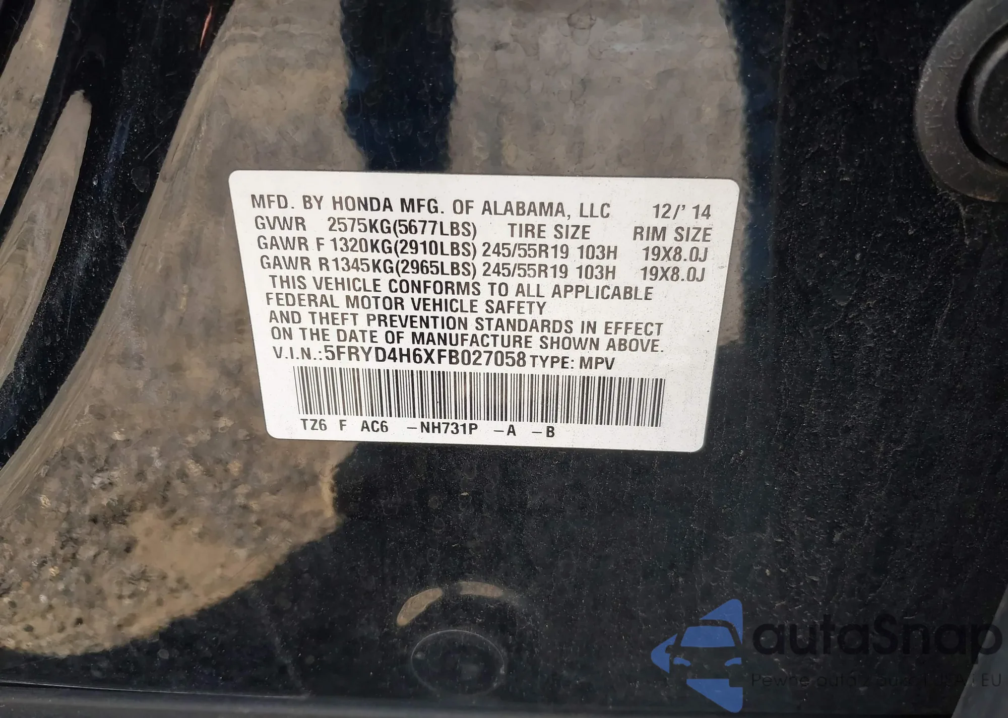 VIN: 5FRYD4H6XFB027058