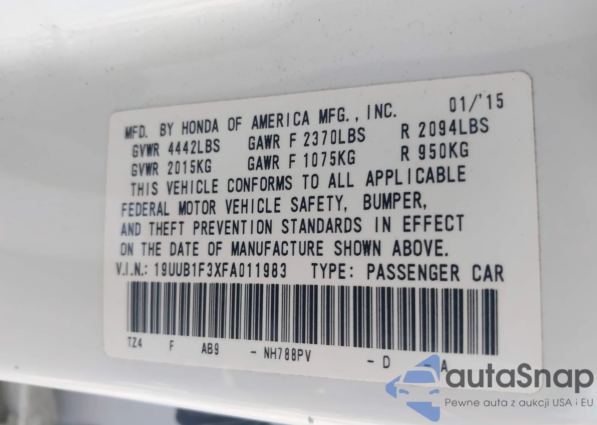 VIN: 19UUB1F3XFA011983