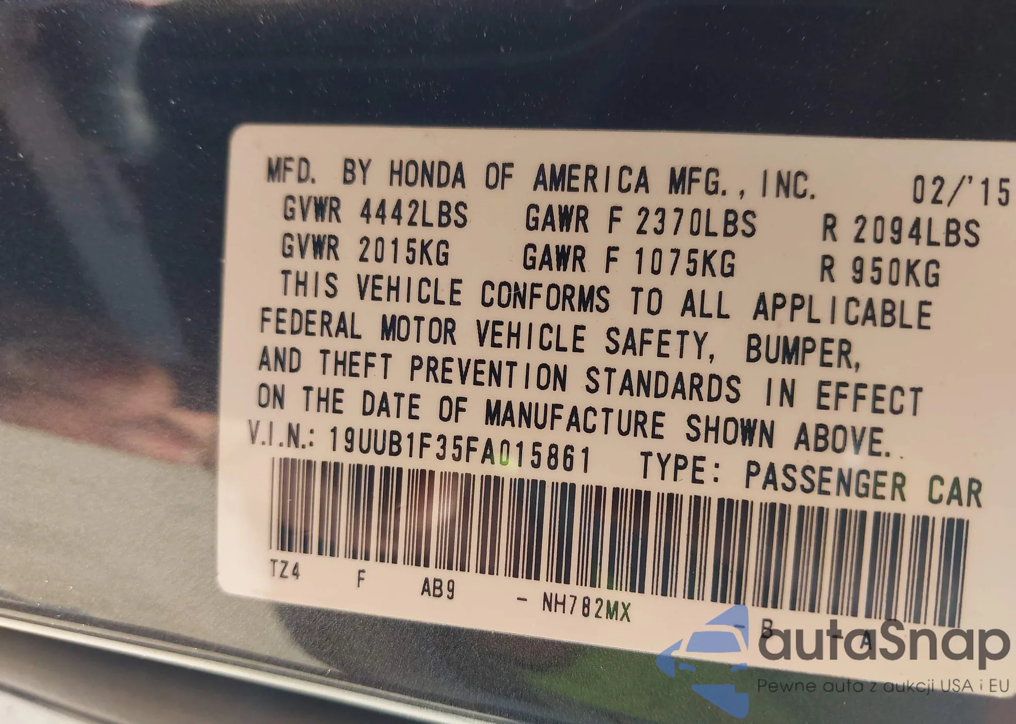 VIN: 19UUB1F35FA015861