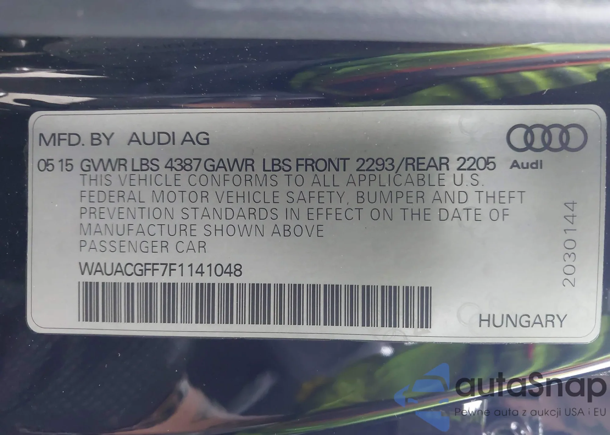 VIN: WAUACGFF7F1141048