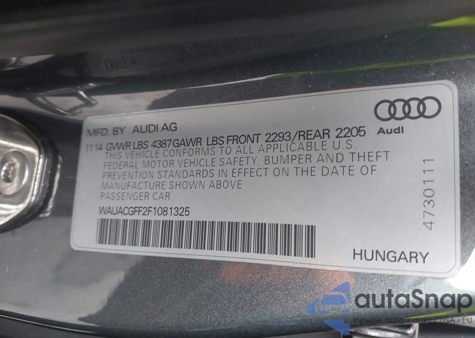 VIN: WAUACGFF2F1081325
