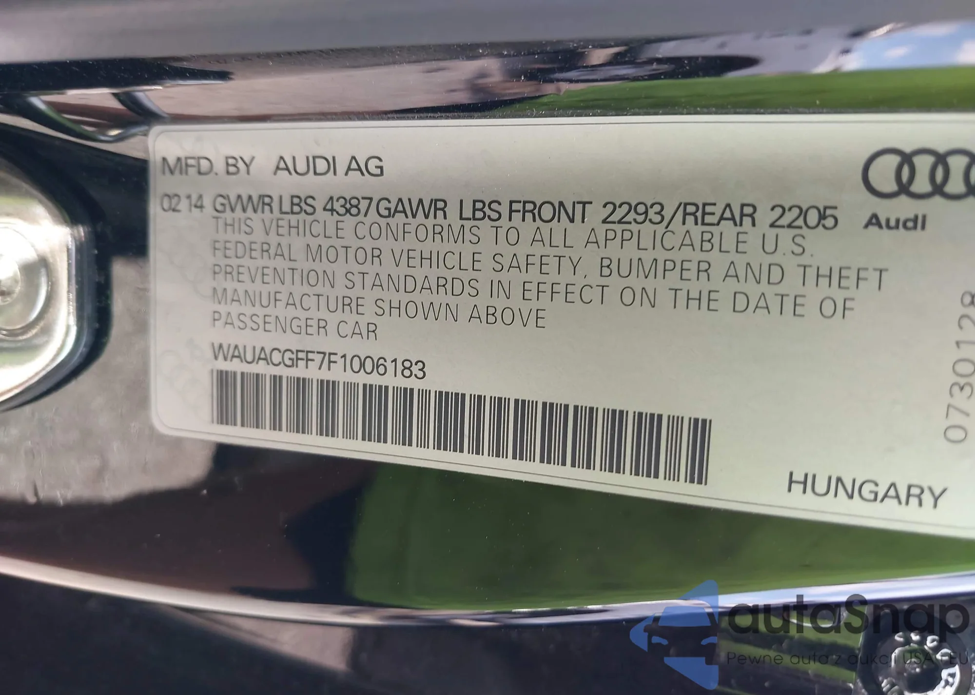 • VIN: WAUACGFF7F1006183