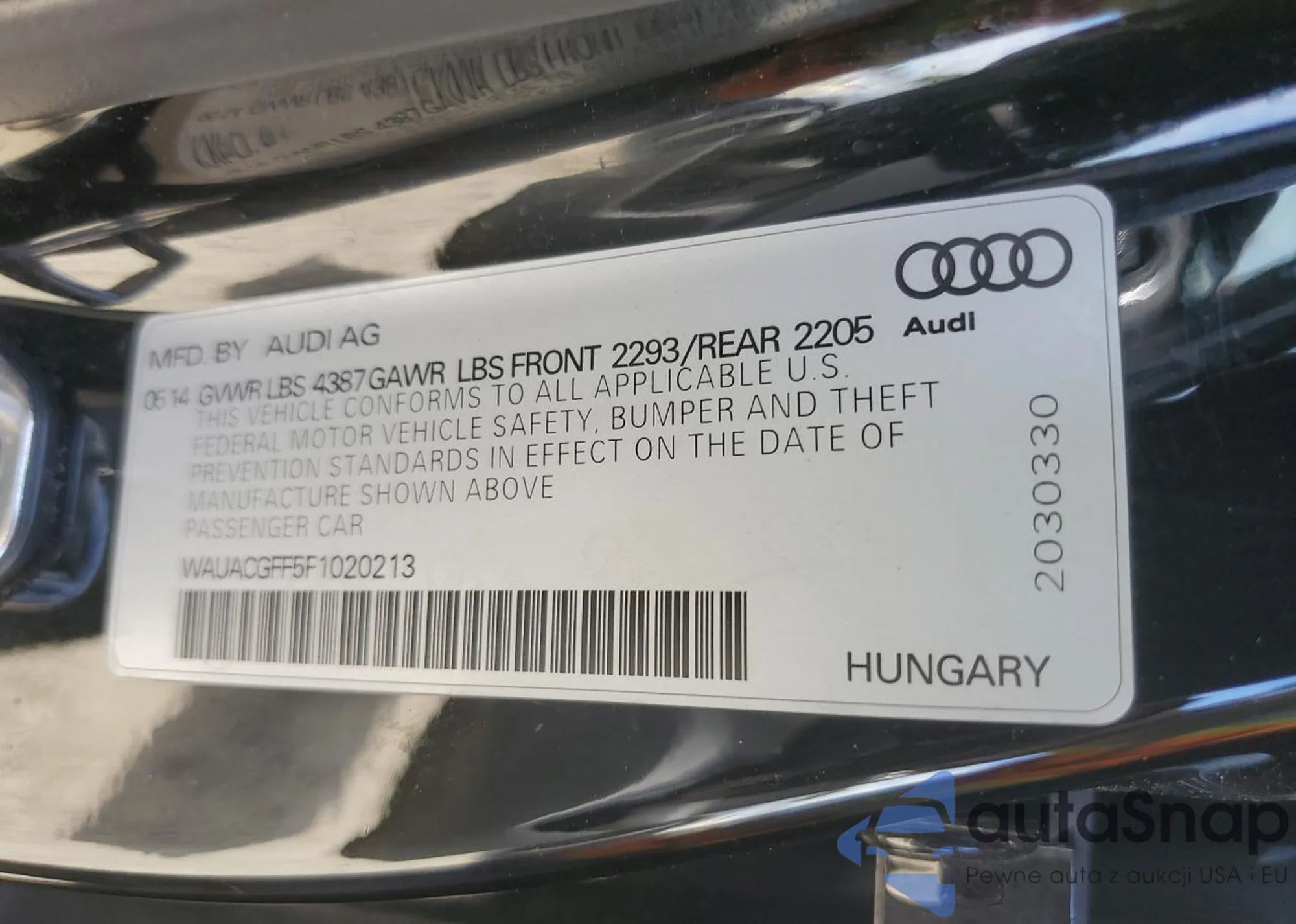 VIN: WAUACGFF5F1020213