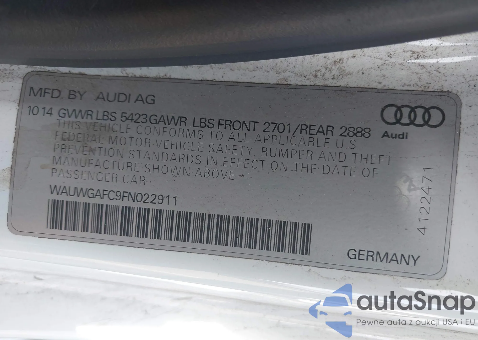WAUWGAFC9FN022911 IAAI