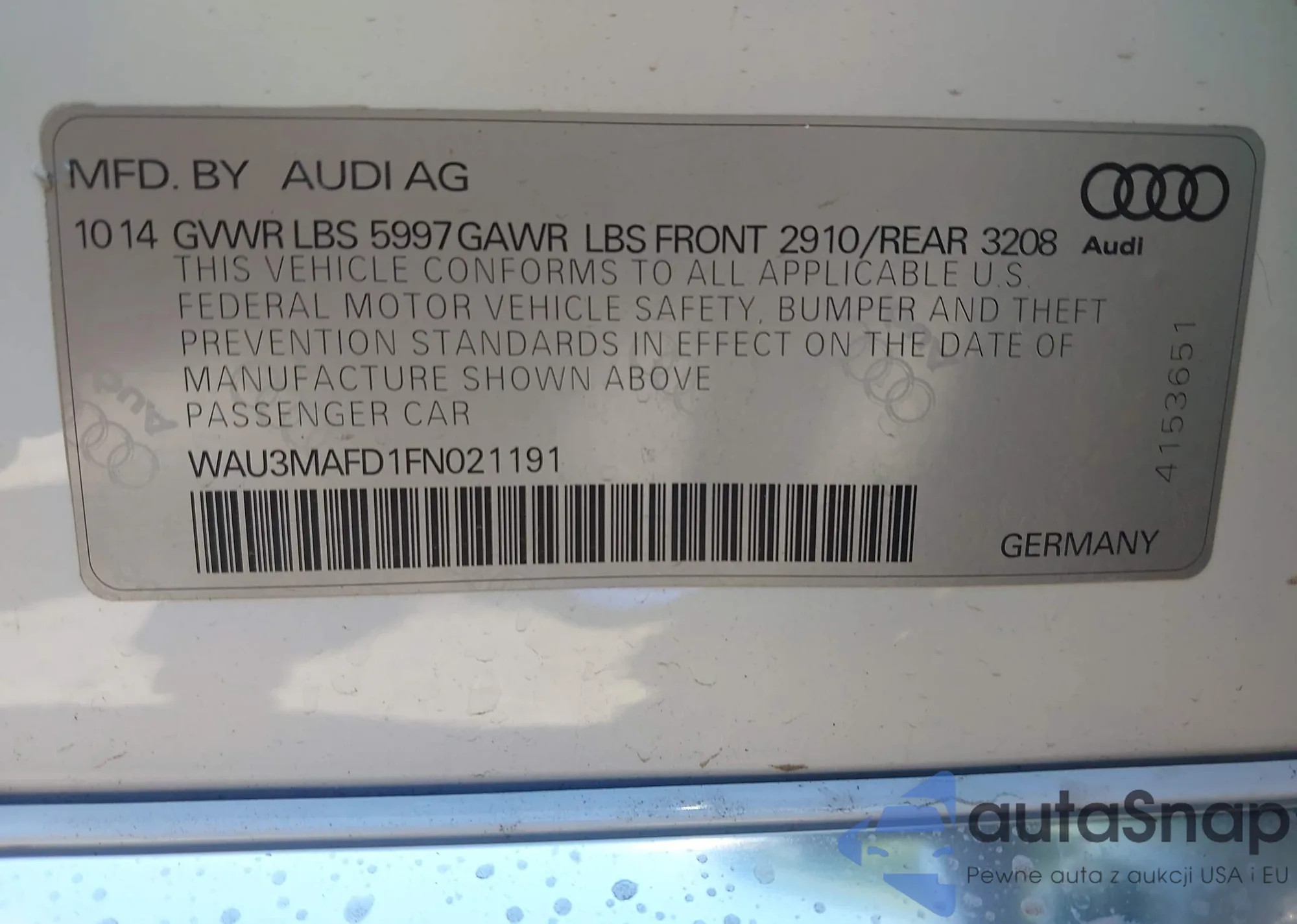 VIN: WAU3MAFD1FN021191