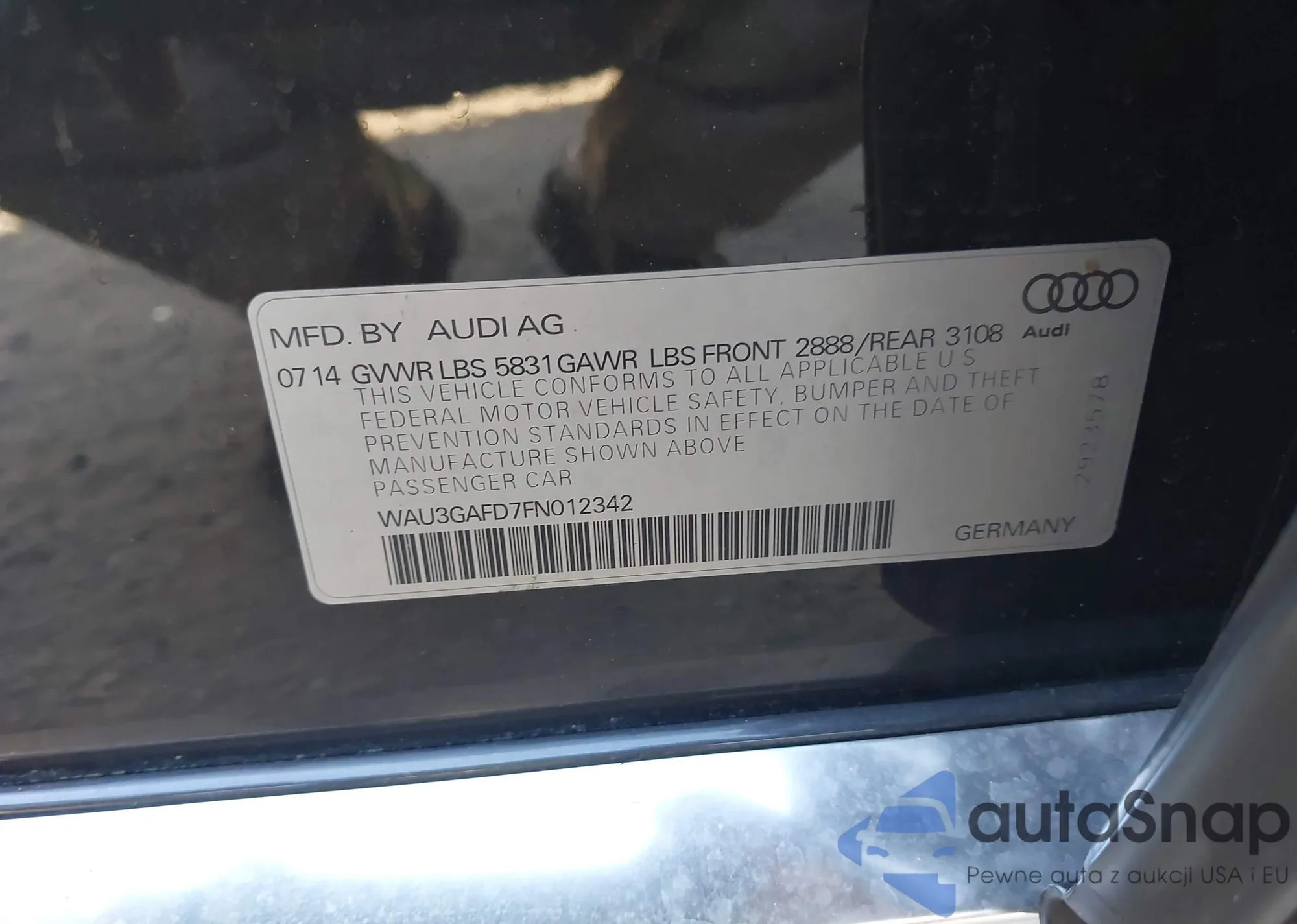 The car Audi A8 2015 (VIN WAU3GAFD7FN012342) has not been auctioned before (0 auctions). The documents are clean, and the mileage matches or is below the market average. Sold by an insurance company – we recommend purchase. Delivery to the port will take approx. 6–8 weeks.