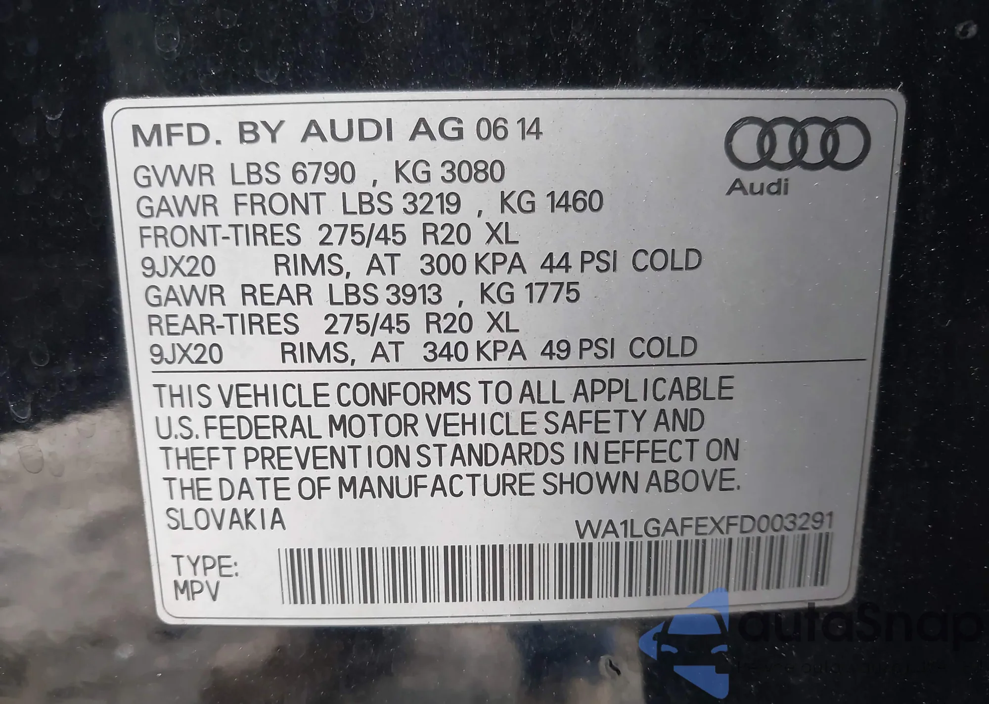 • VIN: WA1LGAFEXFD003291
