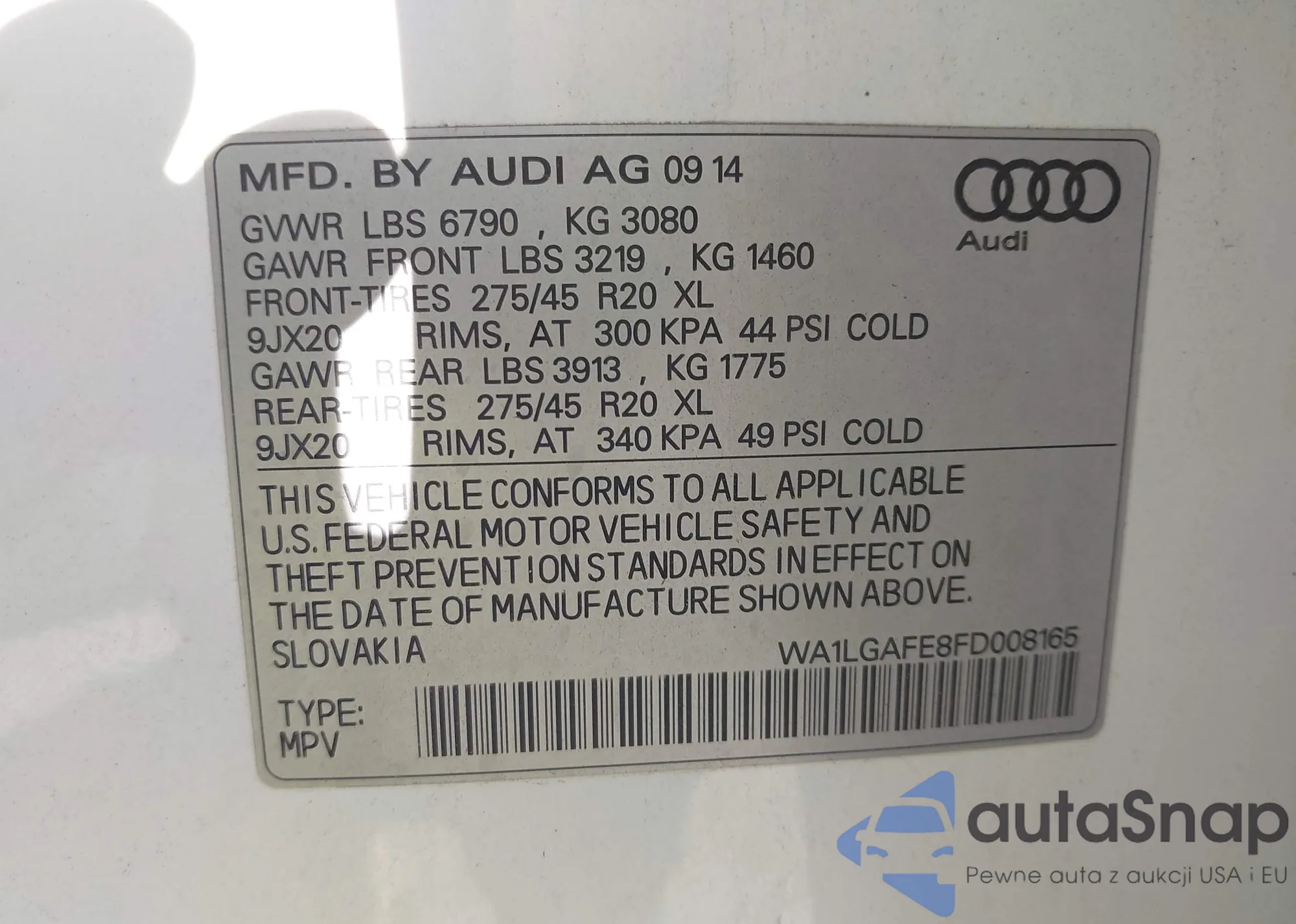 The car Audi Q7 2015 (VIN WA1LGAFE8FD008165) has not been auctioned before. The documents are clean, and the mileage matches or is below the market average. Sold by an insurance company – we recommend purchase. Delivery to the port will take approx. 6–8 weeks.