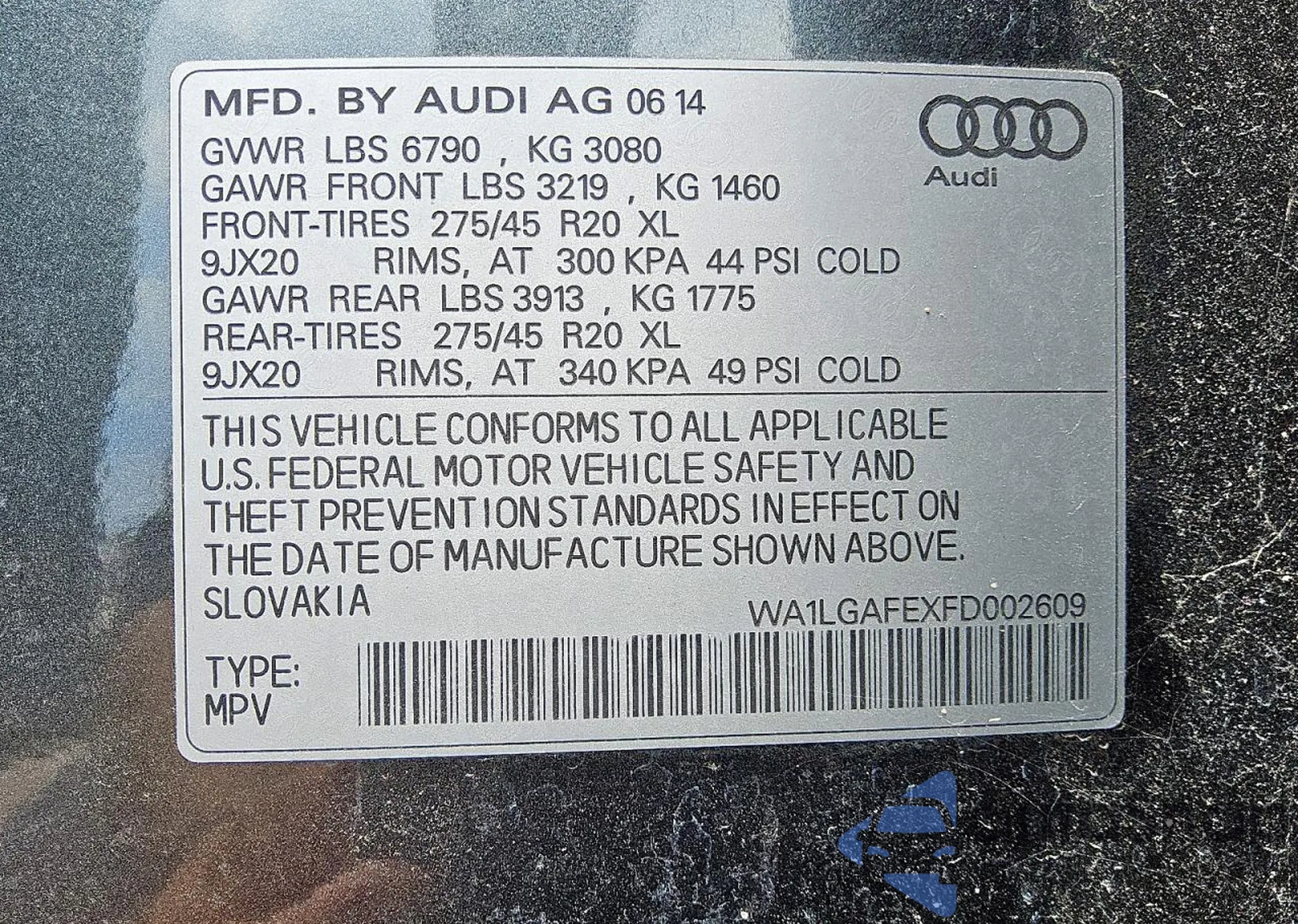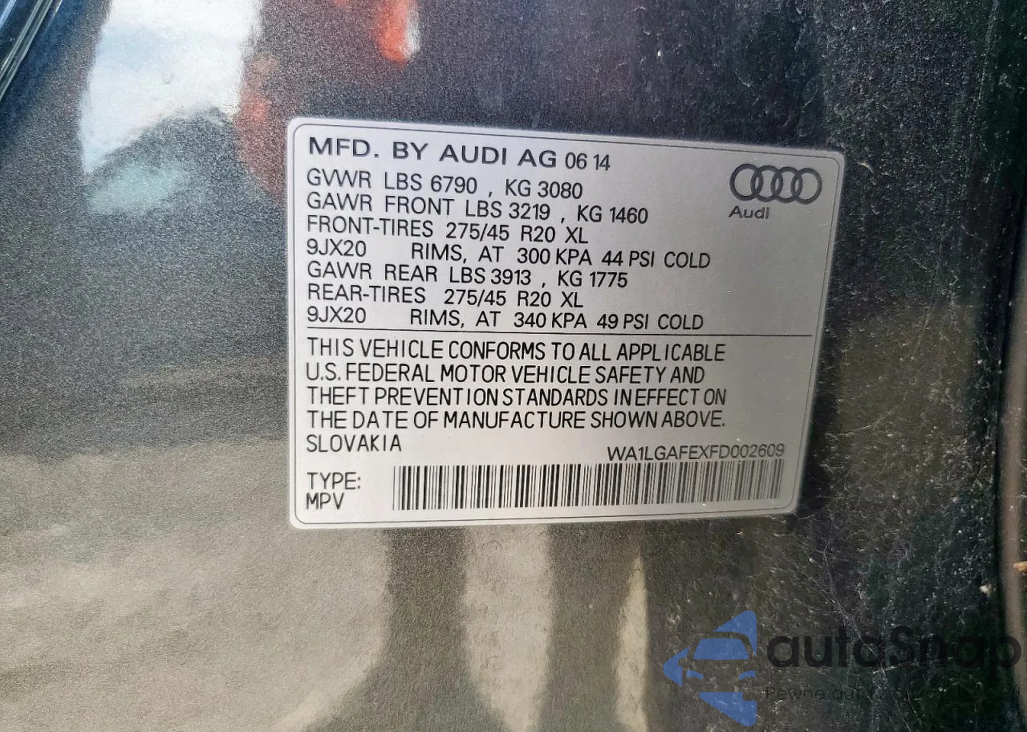 VIN: WA1LGAFEXFD002609