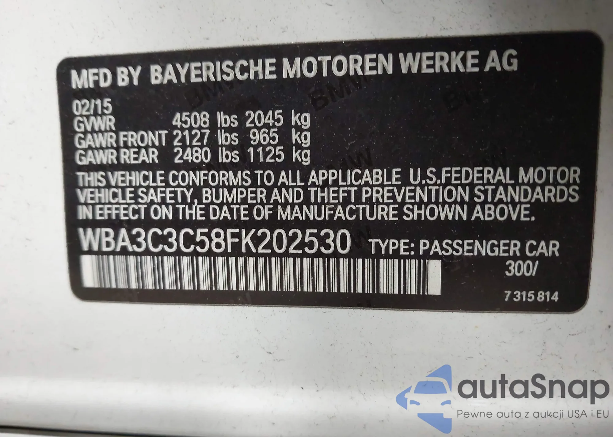 • VIN: WBA3C3C58FK202530