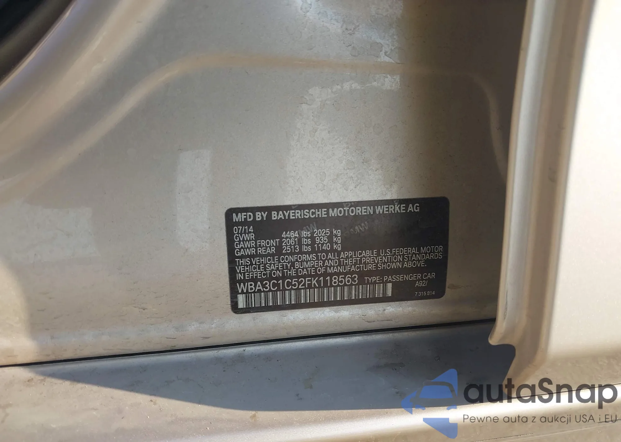 VIN: WBA3C1C52FK118563