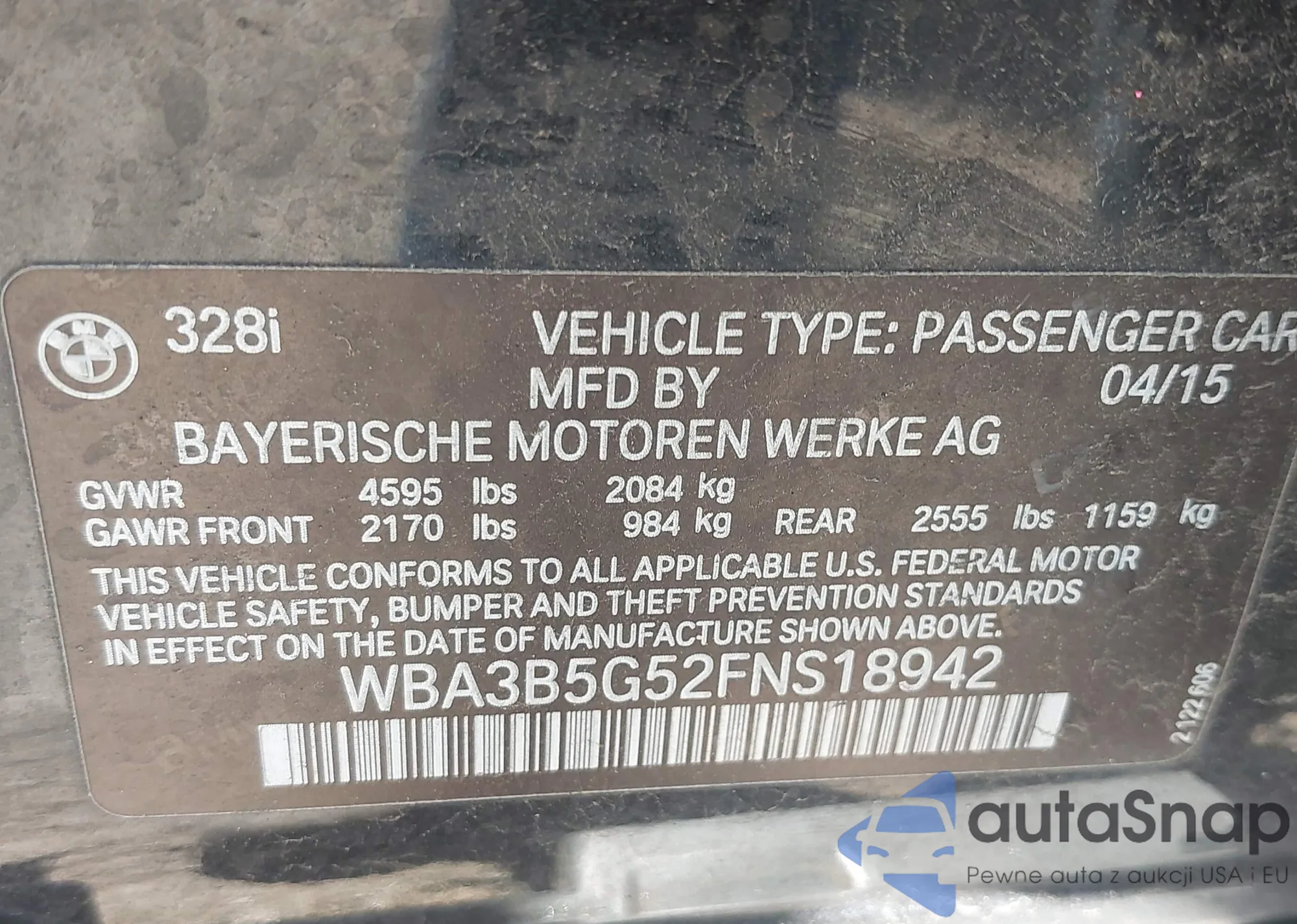 • VIN: WBA3B5G52FNS18942