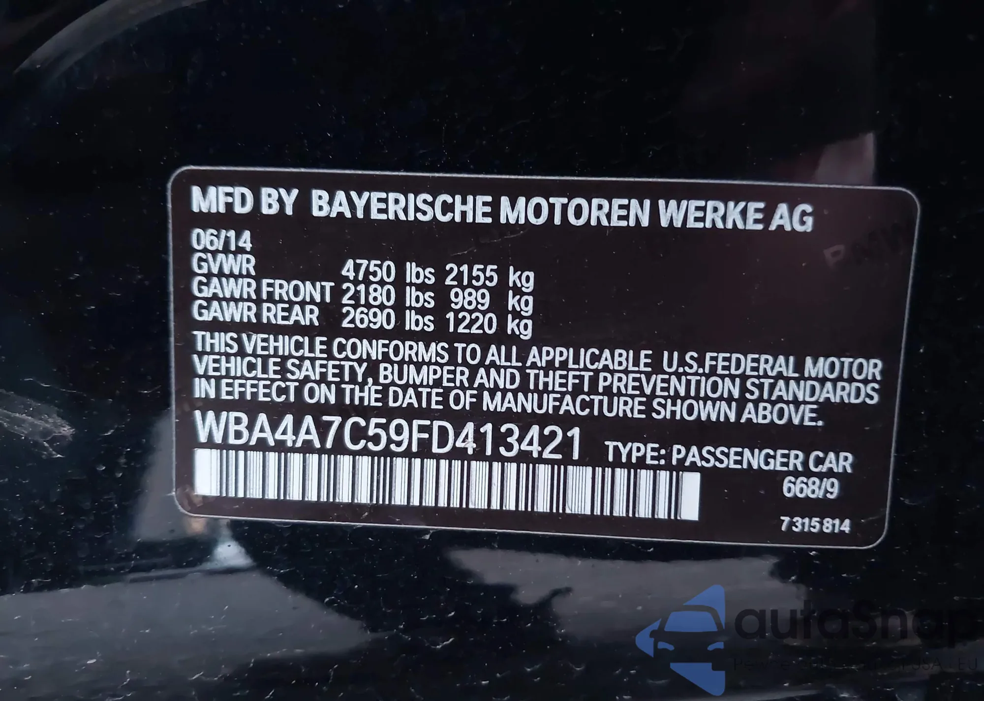 VIN: WBA4A7C59FD413421