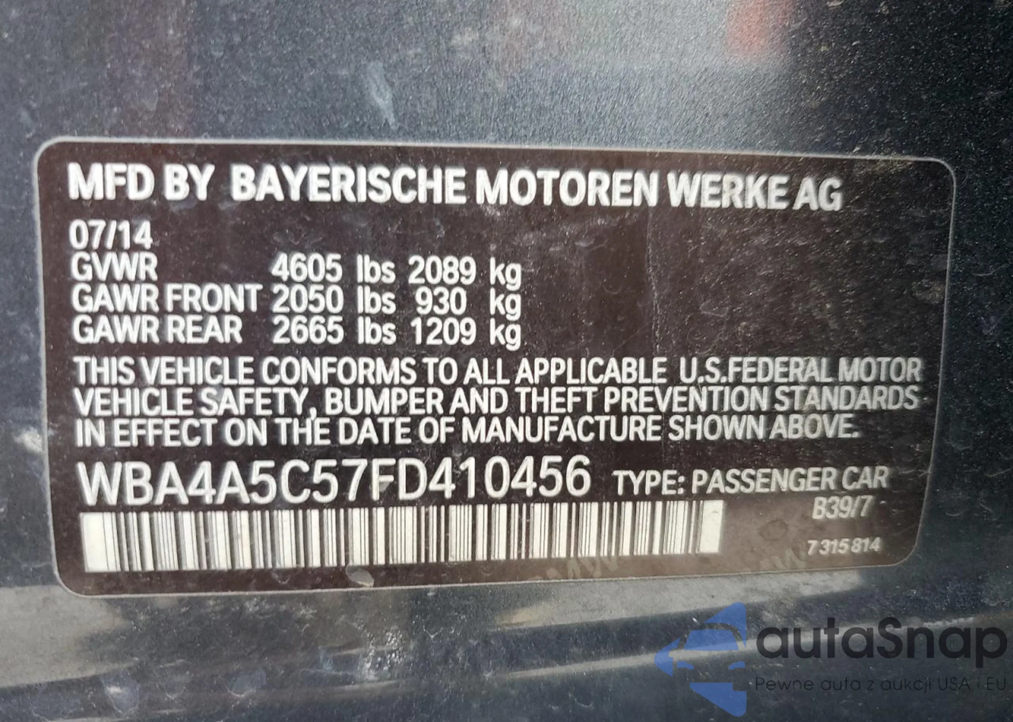 VIN: WBA4A5C57FD410456