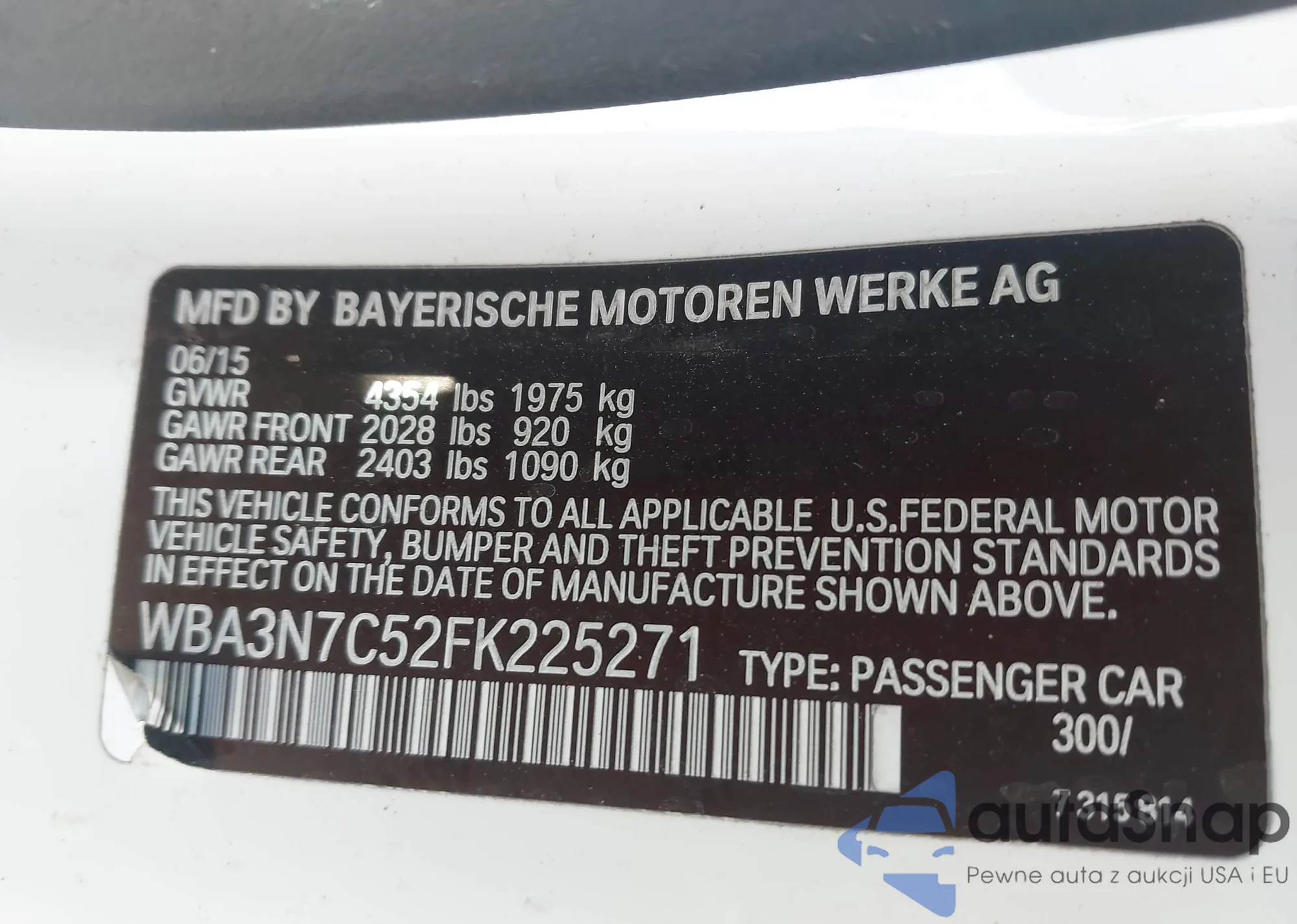 The car BMW 4er 2015 (VIN WBA3N7C52FK225271) has not been auctioned before. The documents are clean, and the mileage matches or is below the market average. Sold by an insurance company – we recommend purchase. Delivery to the port will take approx. 6–8 weeks.