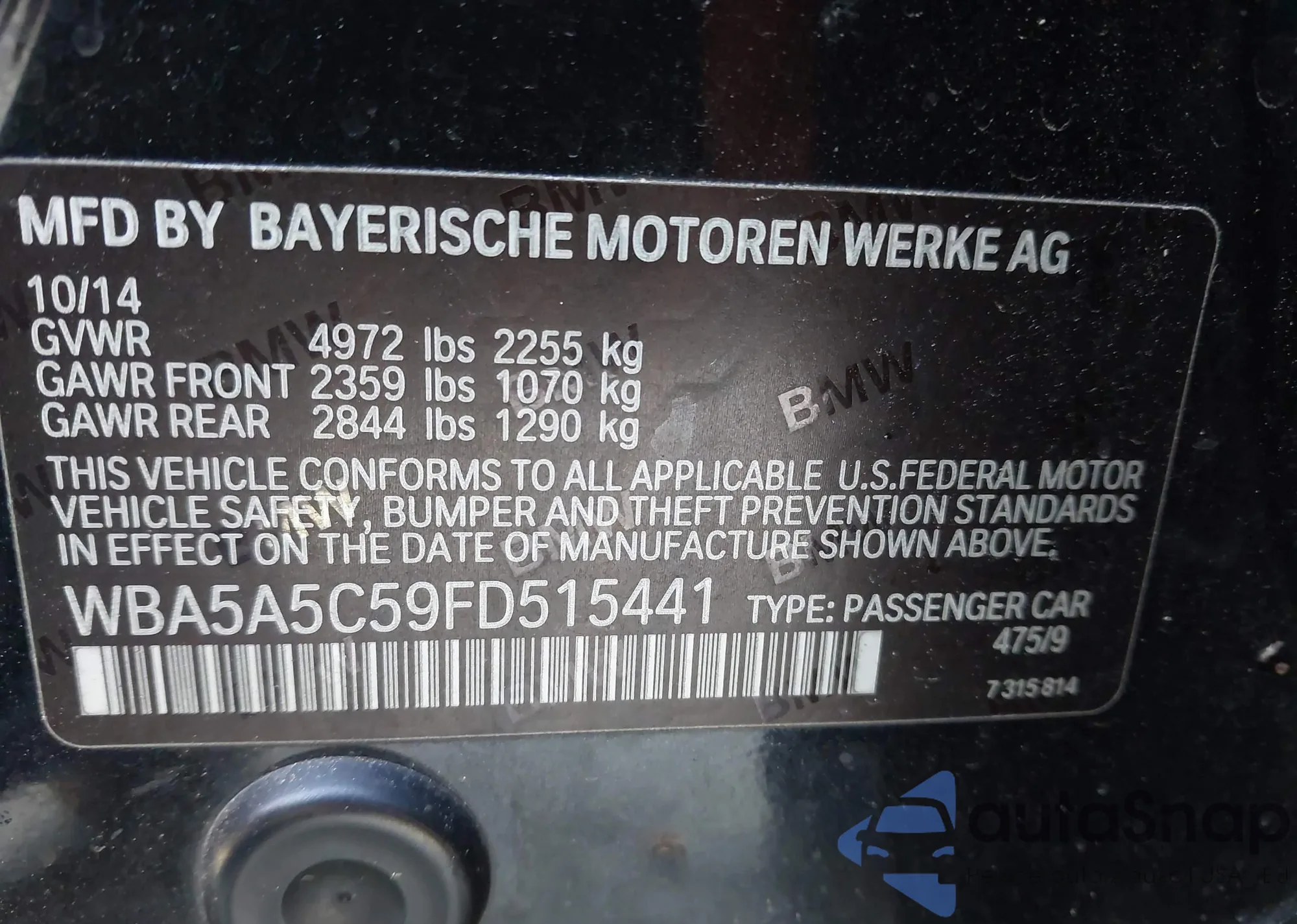 • VIN: WBA5A5C59FD515441