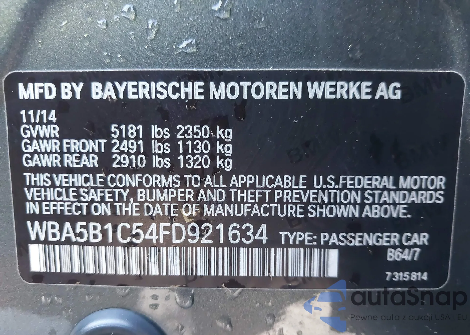 VIN: WBA5B1C54FD921634