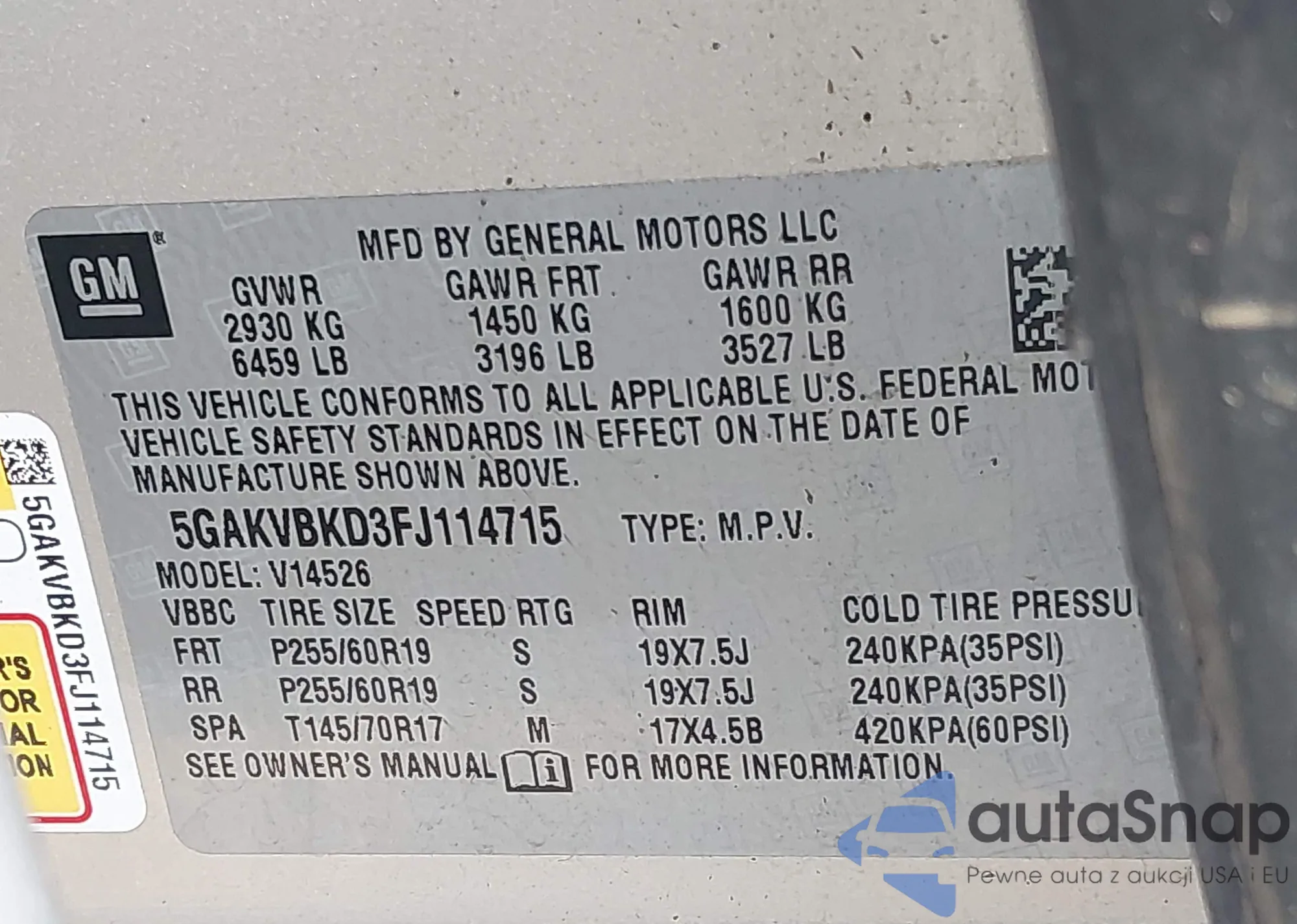 VIN: 5GAKVBKD3FJ114715