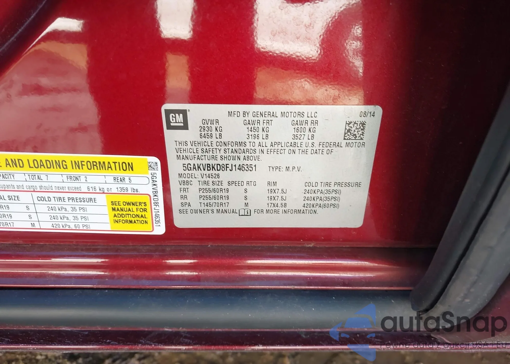 The car Buick Enclave 2015 (VIN 5GAKVBKD8FJ146351) has not been auctioned before. The documents are clean, and the mileage matches or is below the market average. Sold by an insurance company – we recommend purchase. Delivery to the port will take approx. 6–8 weeks.