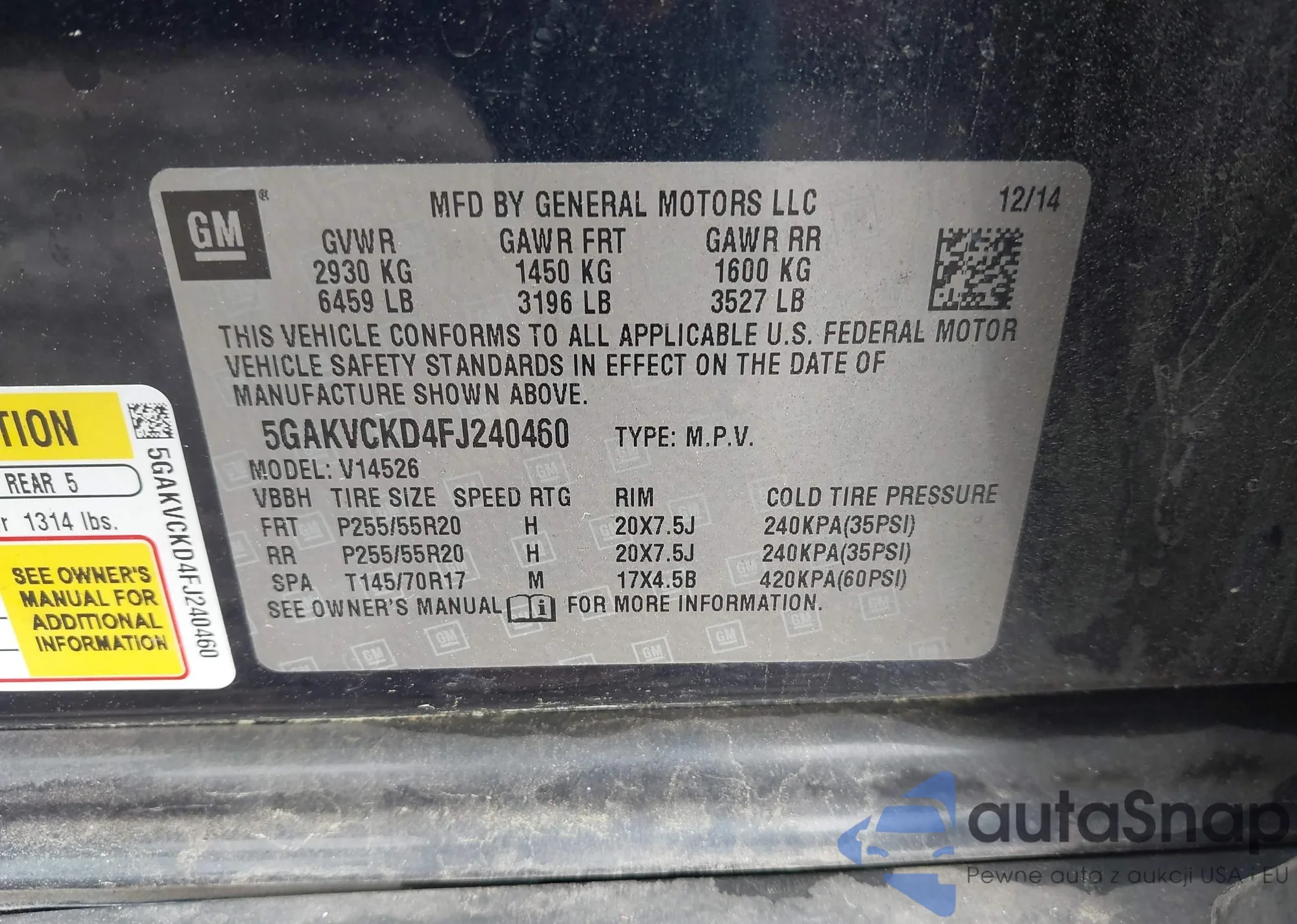 VIN: 5GAKVCKD4FJ240460