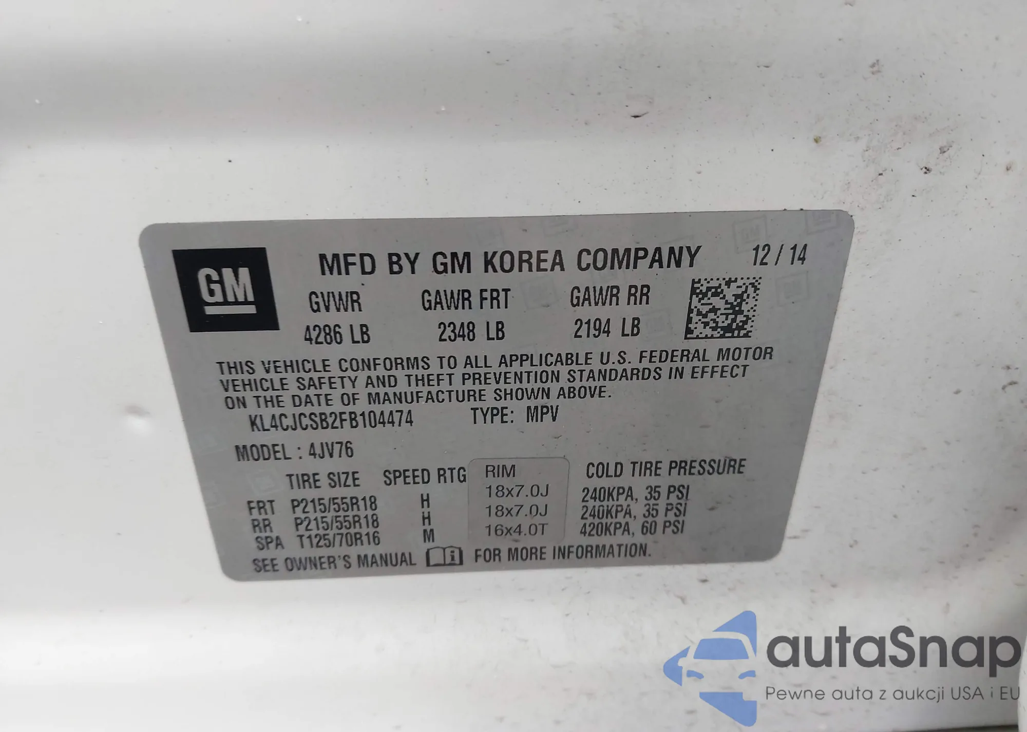 VIN: KL4CJCSB2FB104474