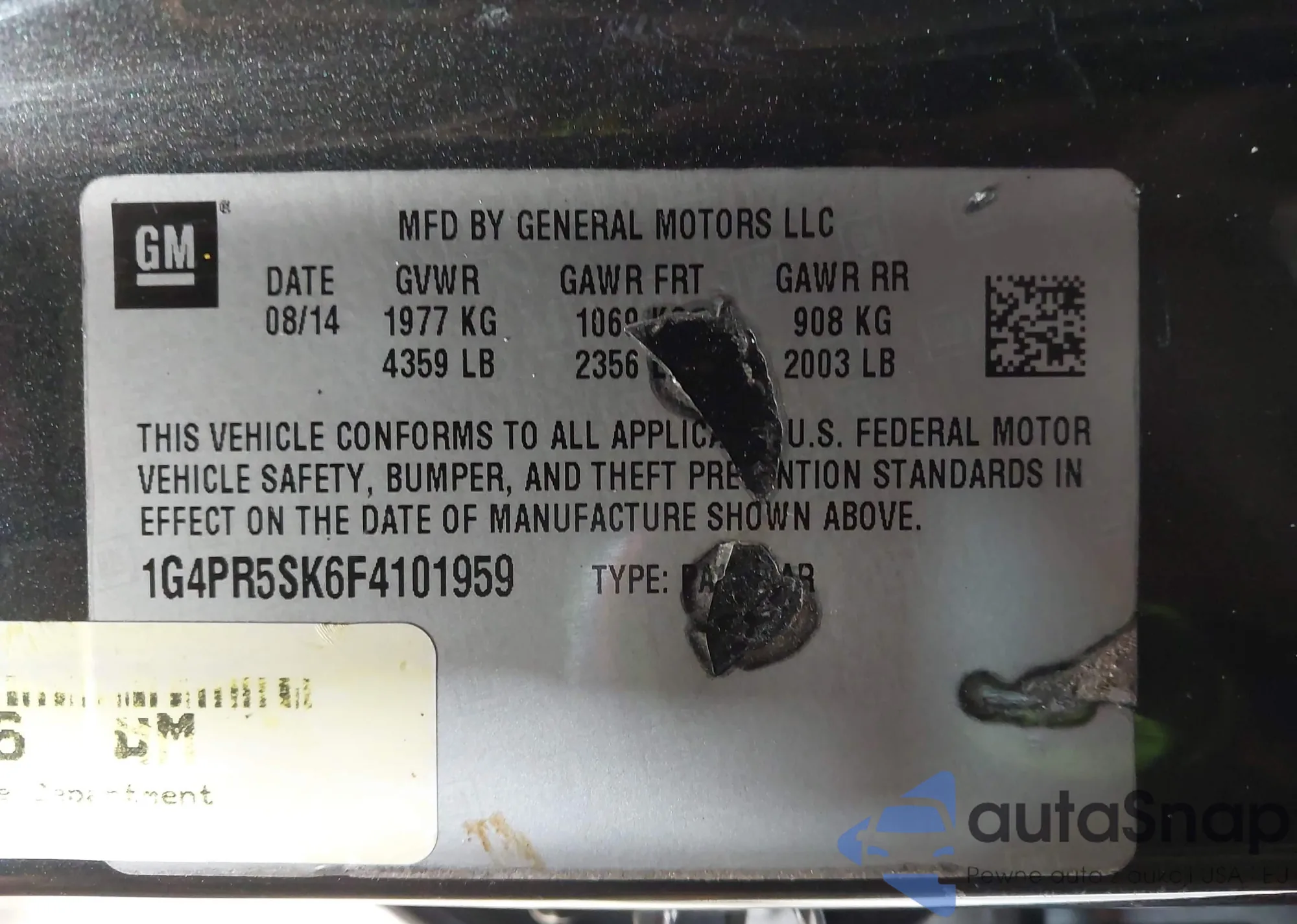 • VIN: 1G4PR5SK6F4101959