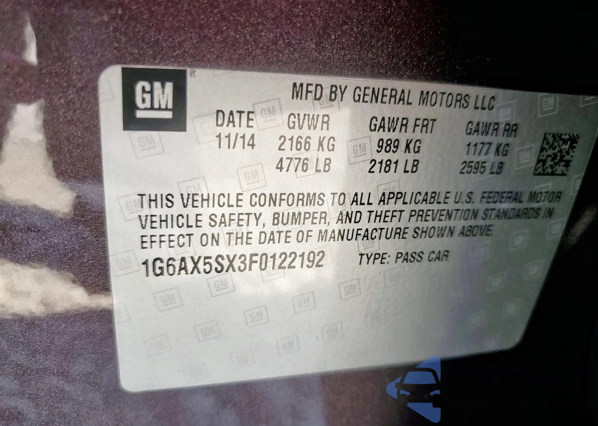 VIN: 1G6AX5SX3F0122192