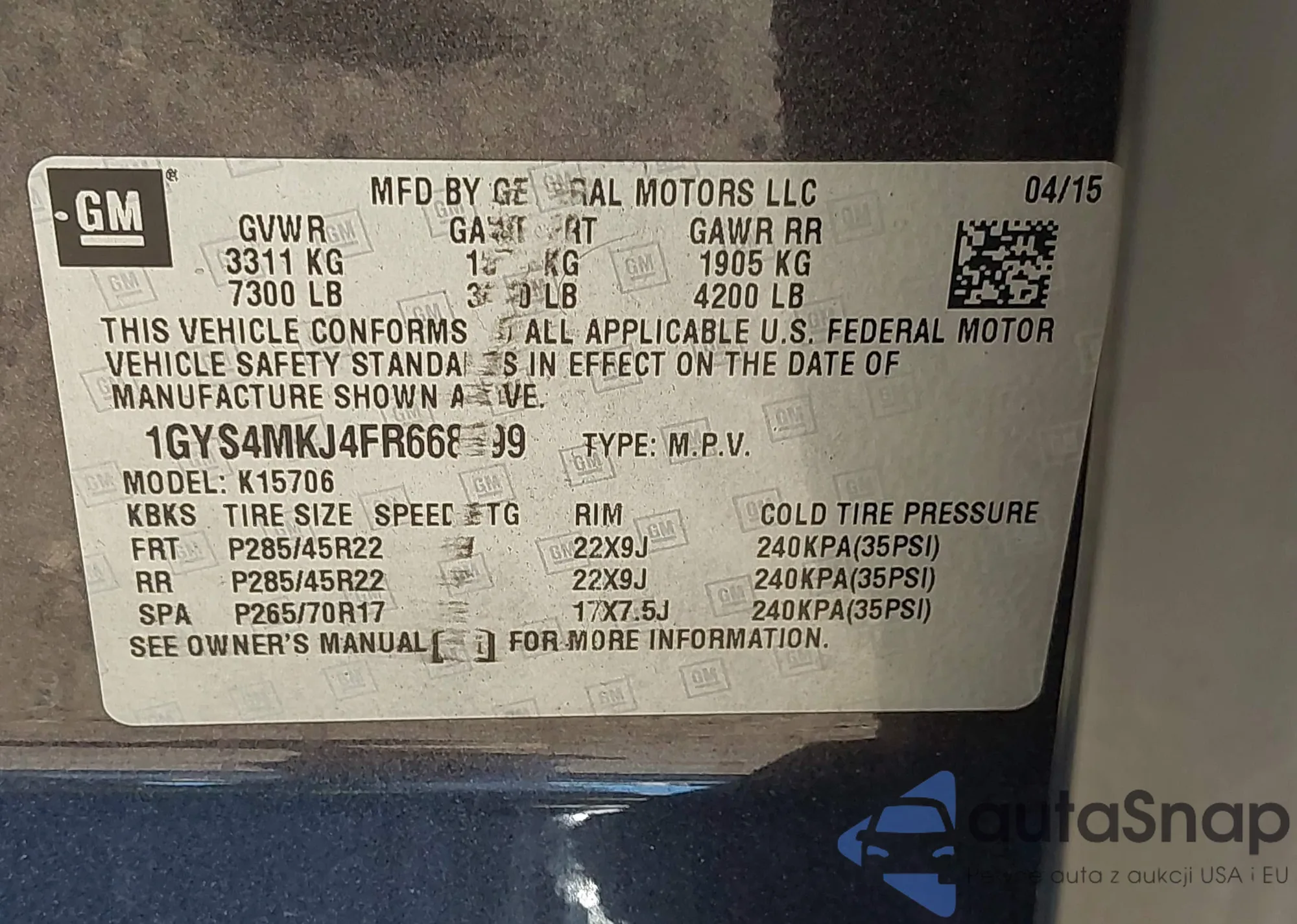 VIN: 1GYS4MKJ4FR668599
