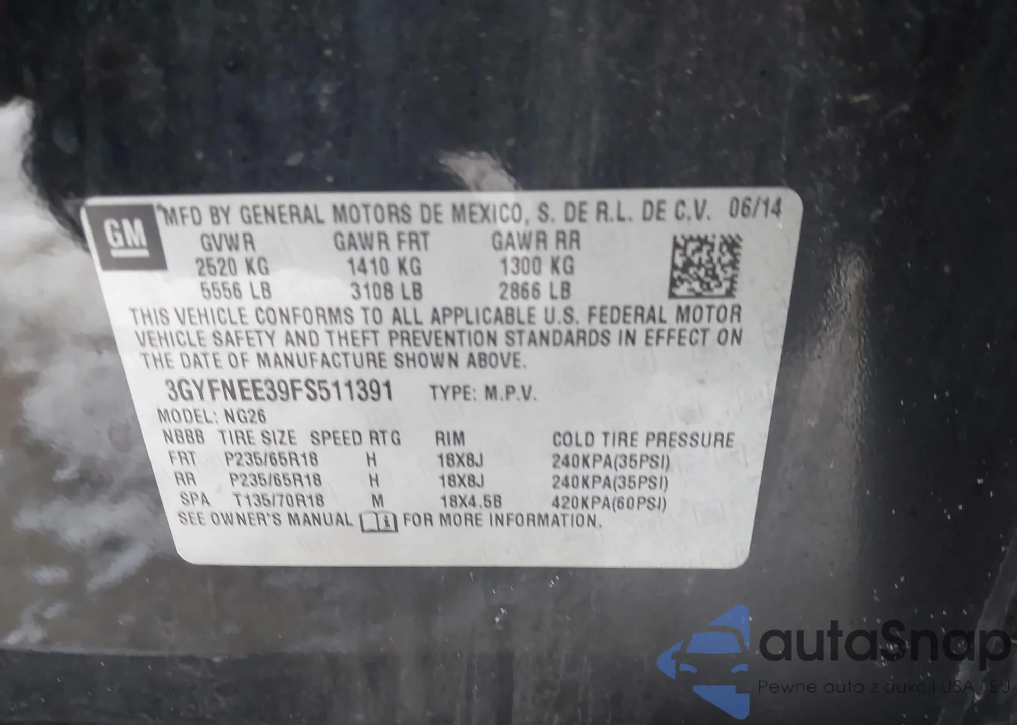 VIN: 3GYFNEE39FS511391