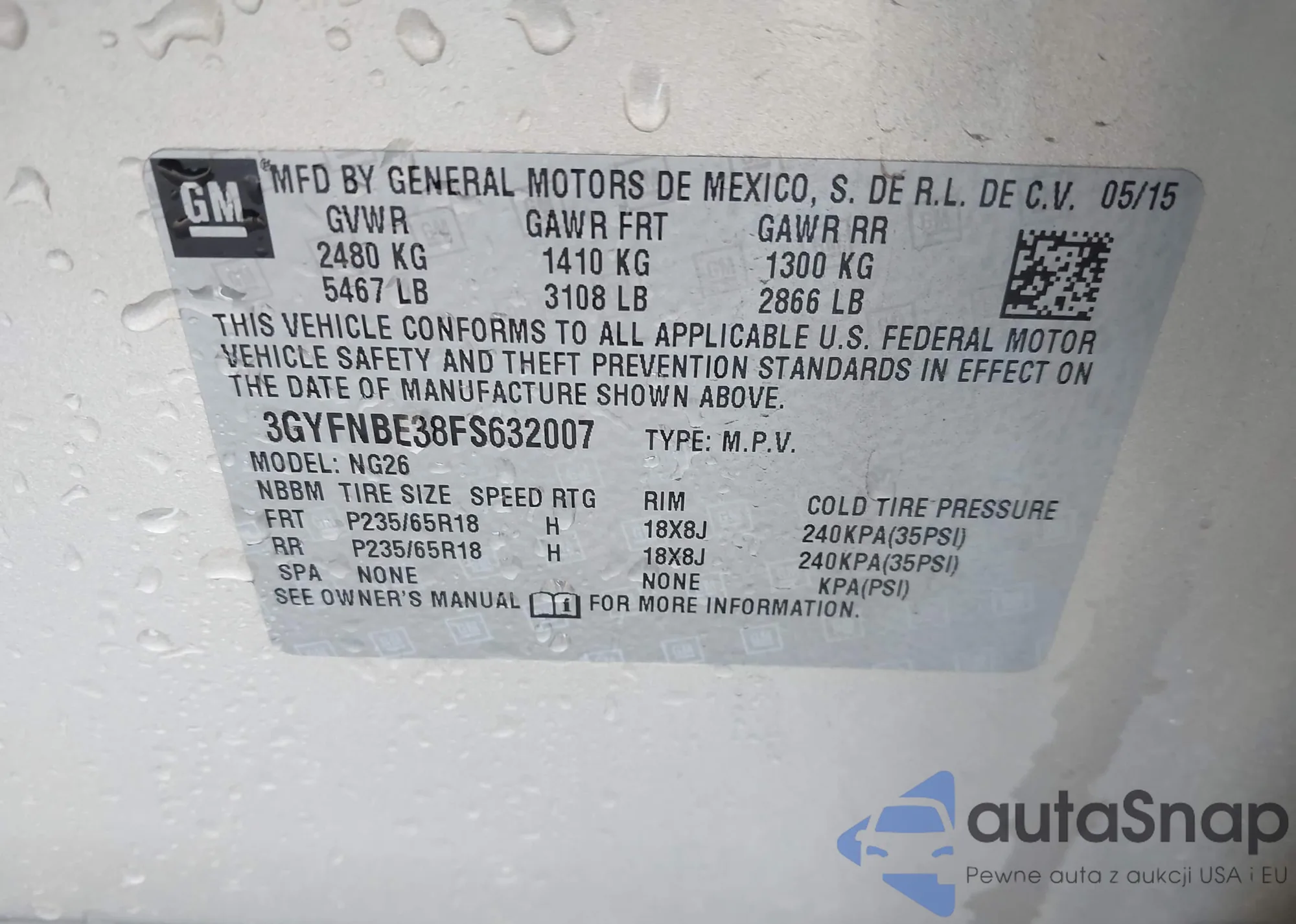 The car Cadillac SRX 2015 (VIN 3GYFNBE38FS632007) has not been auctioned before. The documents are clean, and the mileage matches or is below the market average. Sold by an insurance company – we recommend purchase. Delivery to the port will take approx. 6–8 weeks.