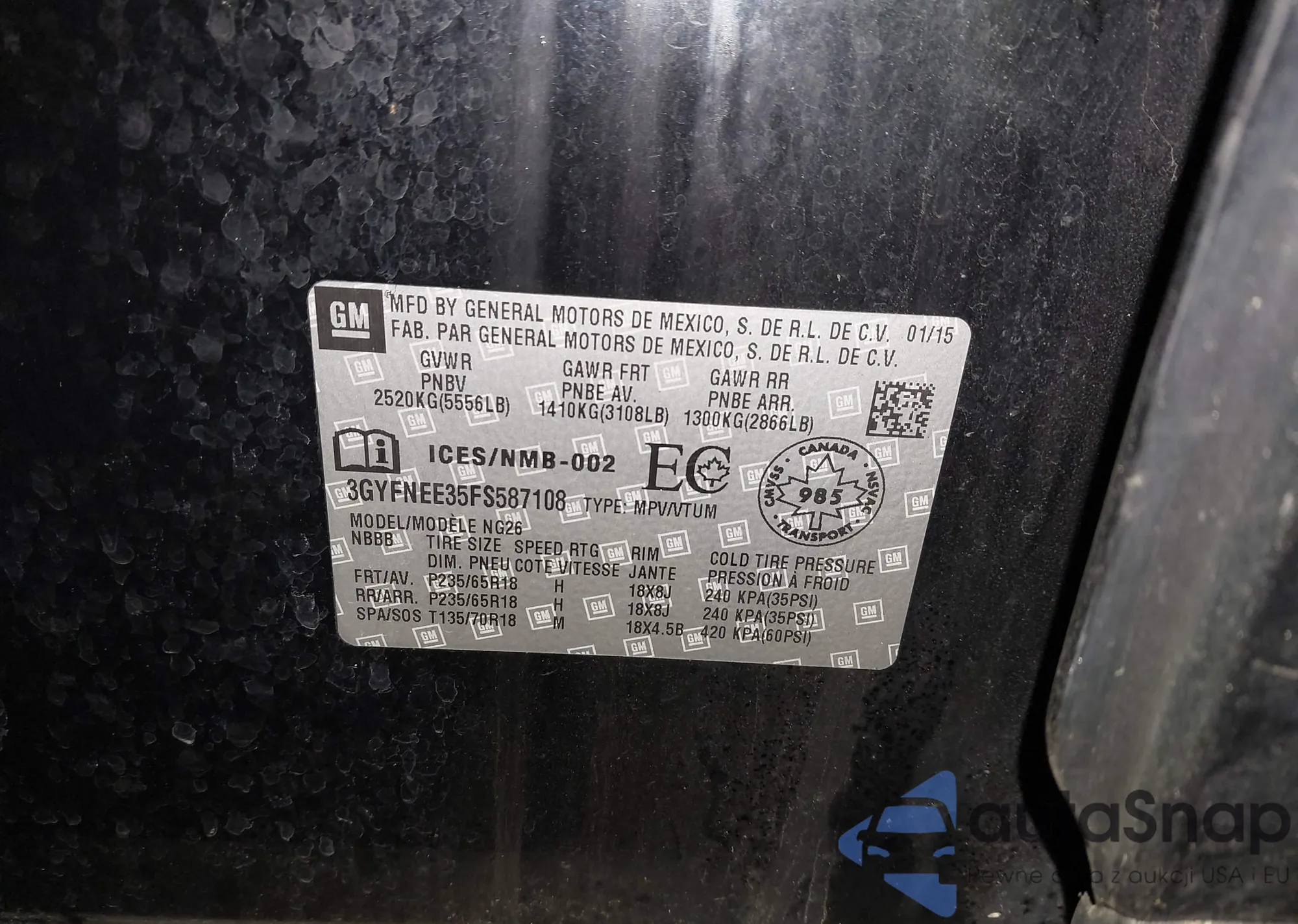 The car Cadillac SRX 2015 (VIN 3GYFNEE35FS587108) has not been auctioned before. The documents are clean, and the mileage matches or is below the market average. Sold by an insurance company – we recommend purchase. Delivery to the port will take approx. 6–8 weeks.