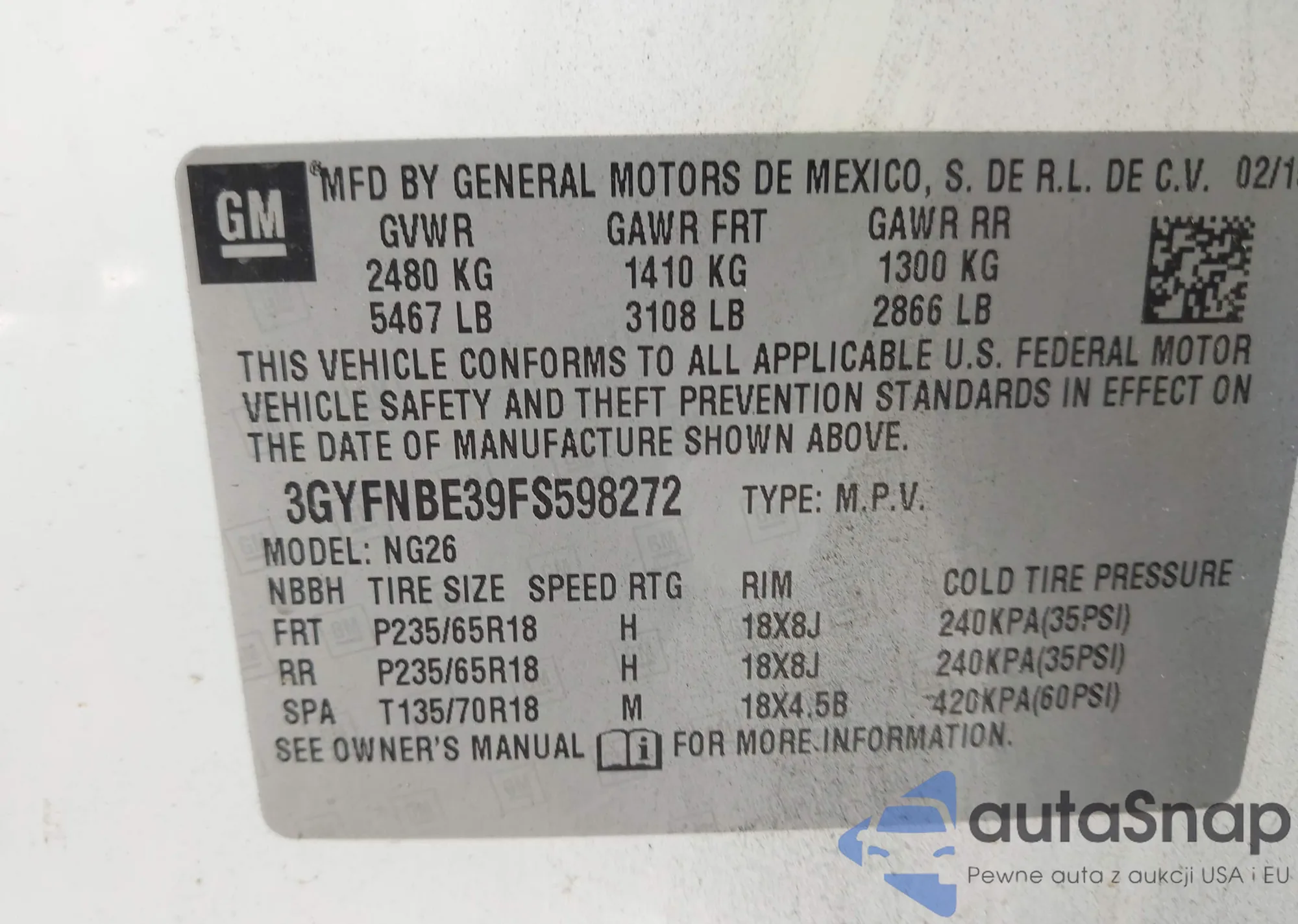 The car Cadillac SRX 2015 (VIN 3GYFNBE39FS598272) has not been auctioned before. The documents are clean, and the mileage matches or is below the market average. Sold by an insurance company – we recommend purchase. Delivery to the port will take approx. 6–8 weeks.