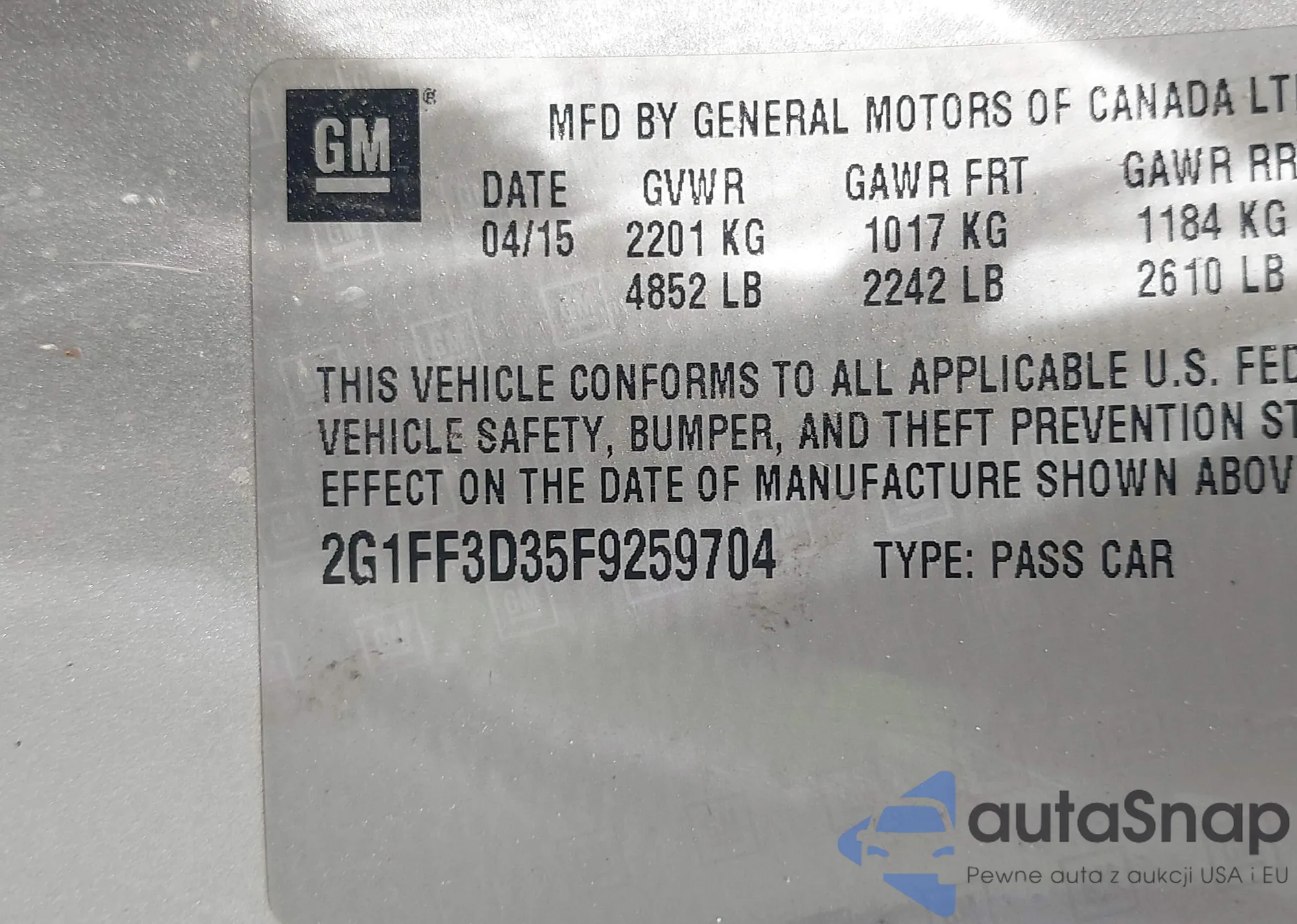 VIN: 2G1FF3D35F9259704