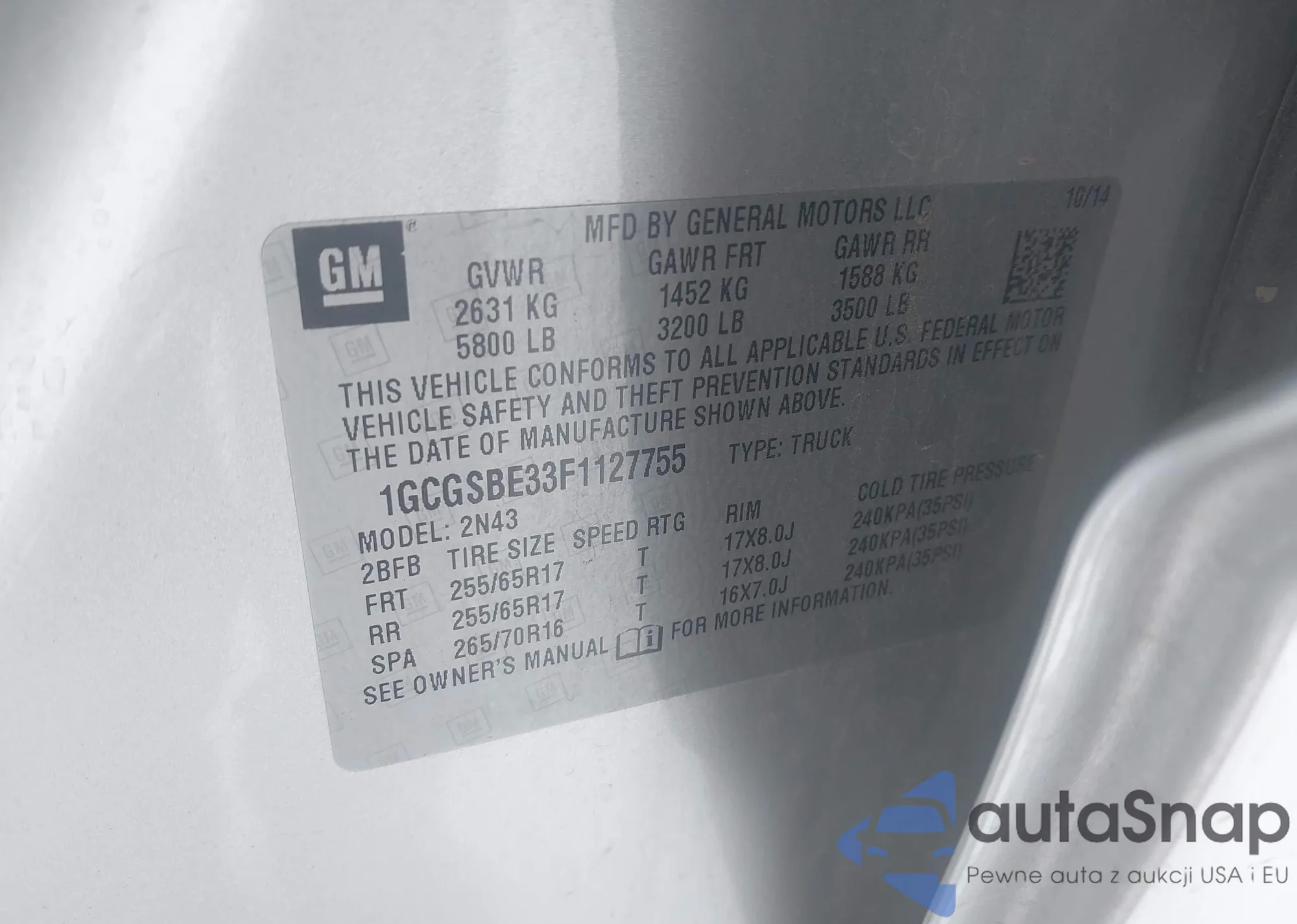 The car Chevrolet Colorado 2015 (VIN 1GCGSBE33F1127755) has not been auctioned before. The documents are clean, and the mileage matches or is below the market average. Sold by an insurance company – we recommend purchase. Delivery to the port will take approx. 6–8 weeks.