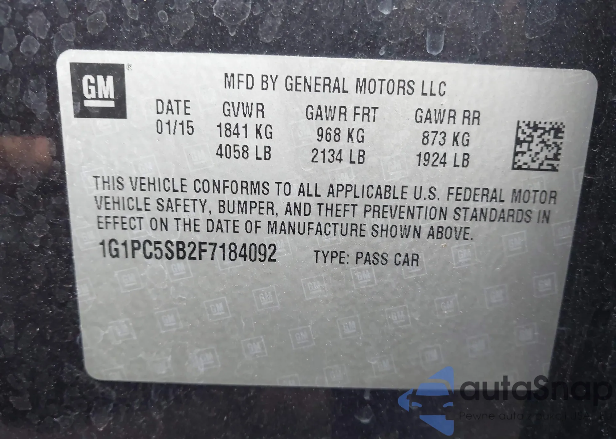 The car Chevrolet Cruze 2015 (VIN 1G1PC5SB2F7184092) has not been auctioned before. The documents are clean, and the mileage matches or is below the market average. Sold by an insurance company – we recommend purchase. Delivery to the port will take approx. 6–8 weeks.