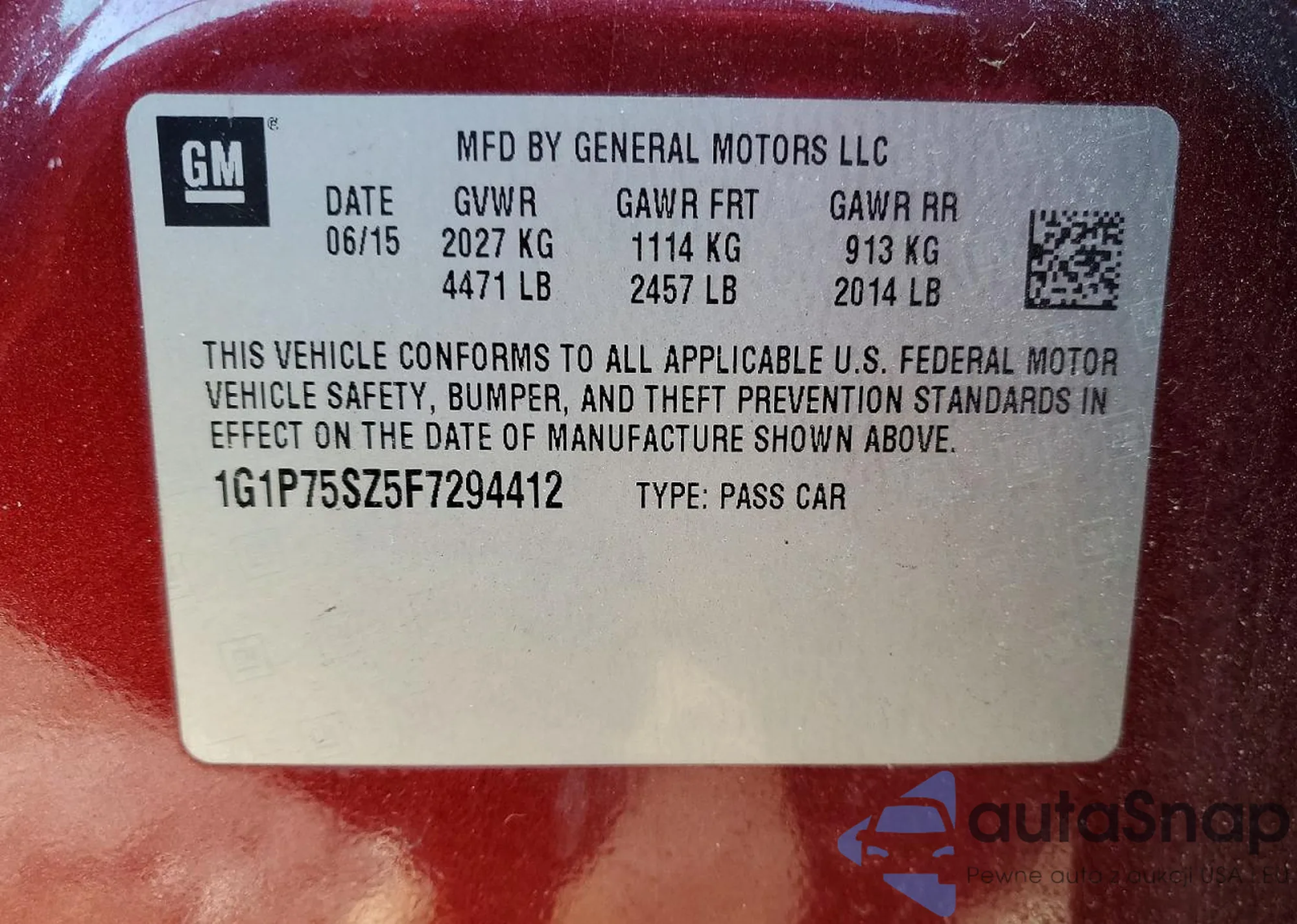 The car Chevrolet Cruze 2015 (VIN 1G1P75SZ5F7294412) is sold by an unverified seller. We recommend checking the Carfax report and confirming registration possibilities before purchase.