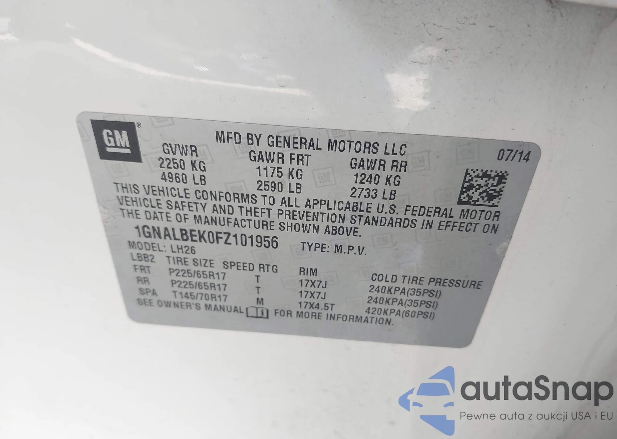 VIN: 1GNALBEK0FZ101956