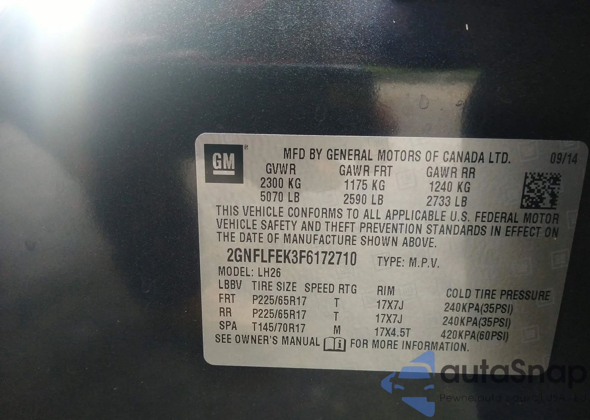 VIN: 2GNFLFEK3F6172710