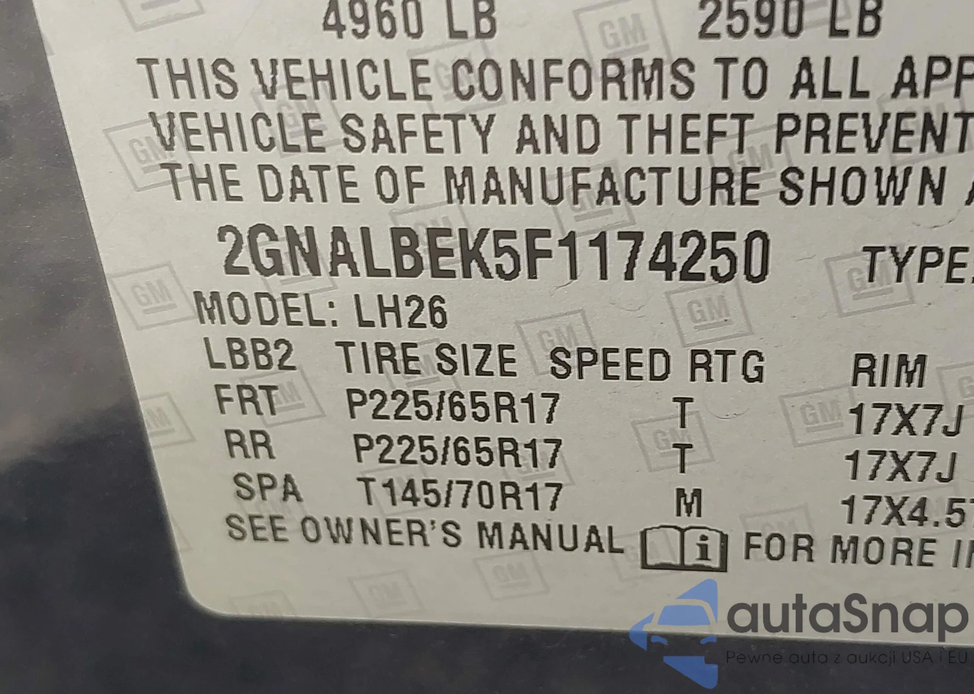 VIN: 2GNALBEK5F1174250