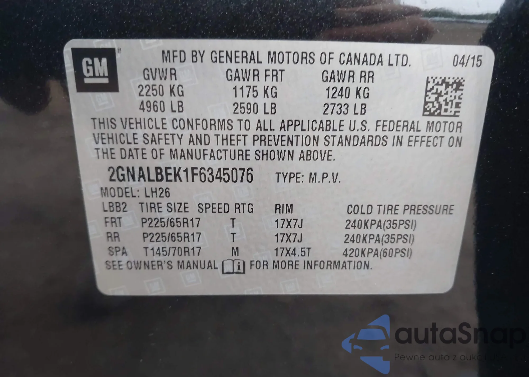 VIN: 2GNALBEK1F6345076