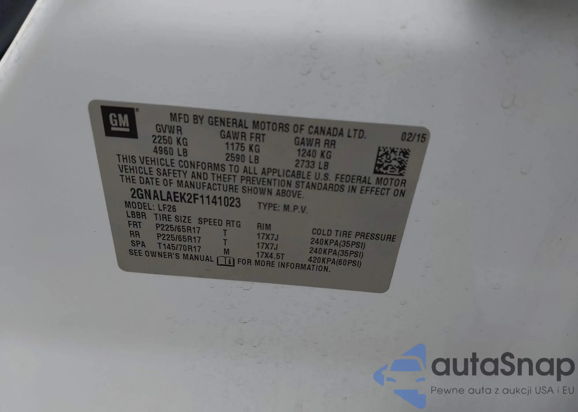 VIN: 2GNALAEK2F1141023