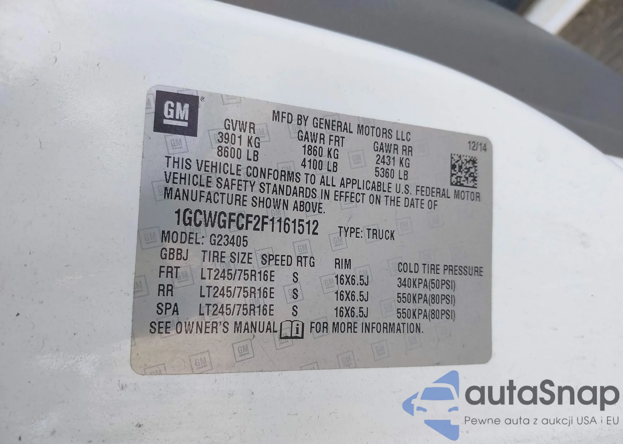 VIN: 1GCWGFCF2F1161512