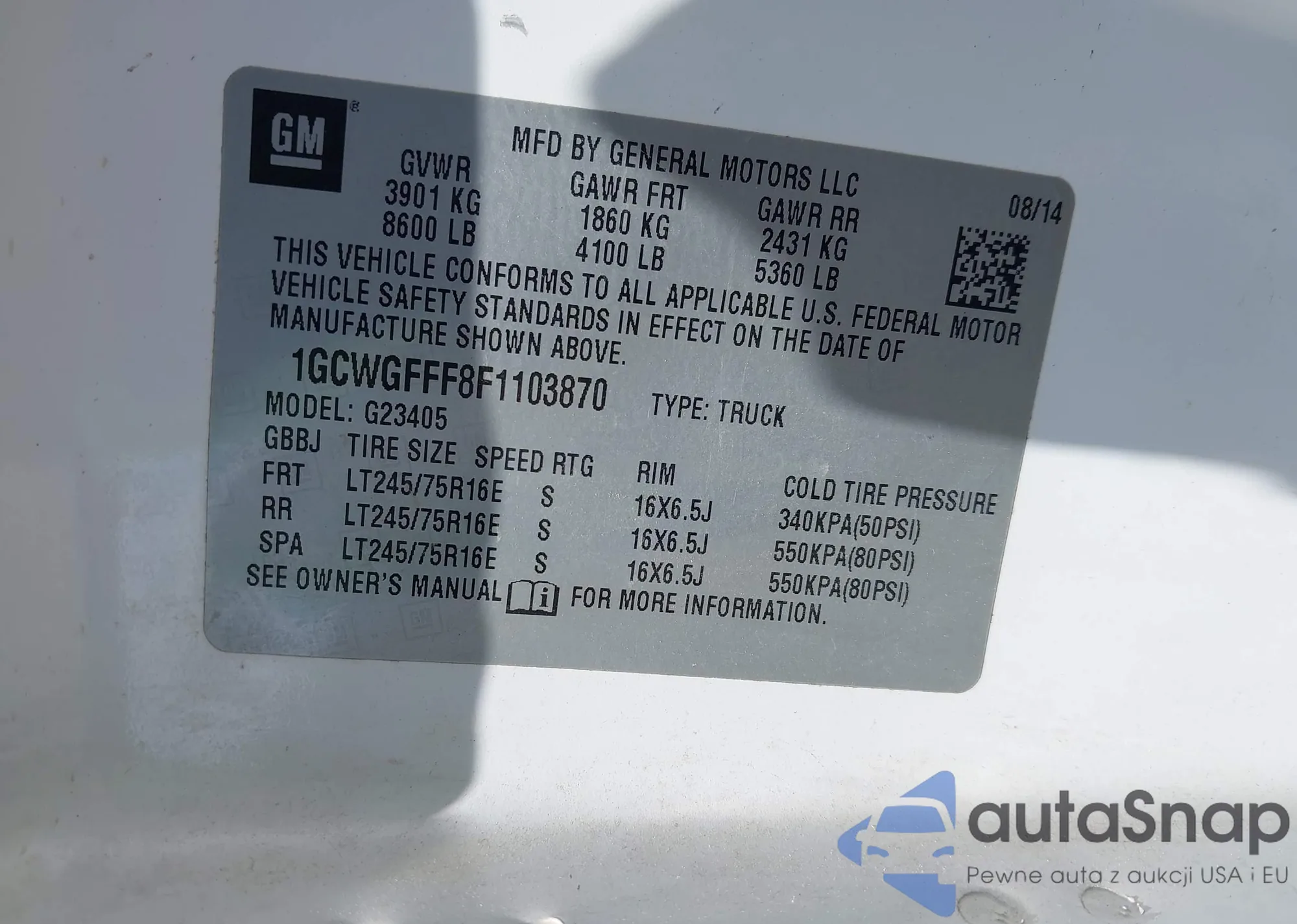 VIN: 1GCWGFFF8F1103870