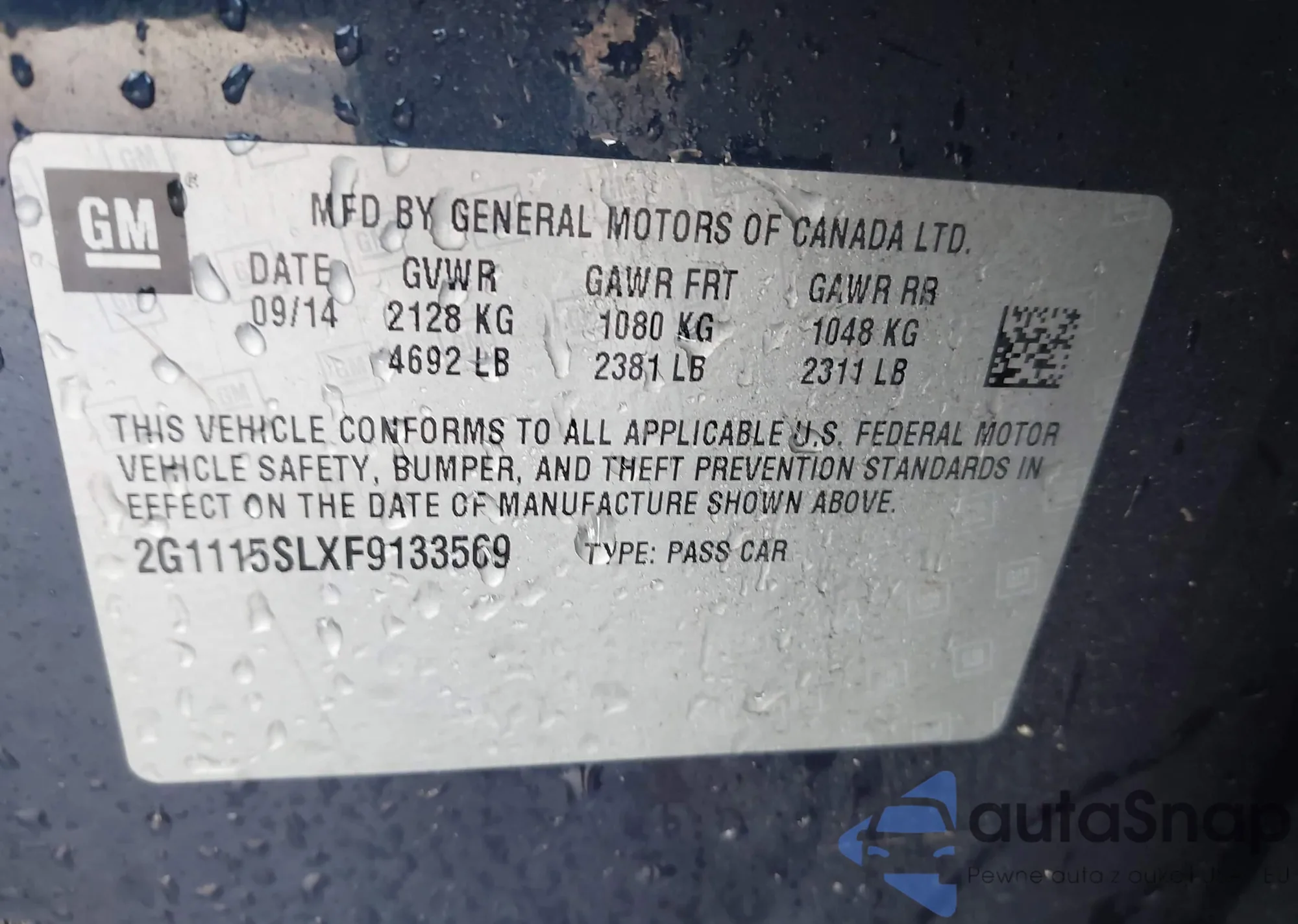 • VIN: 2G1115SLXF9133569