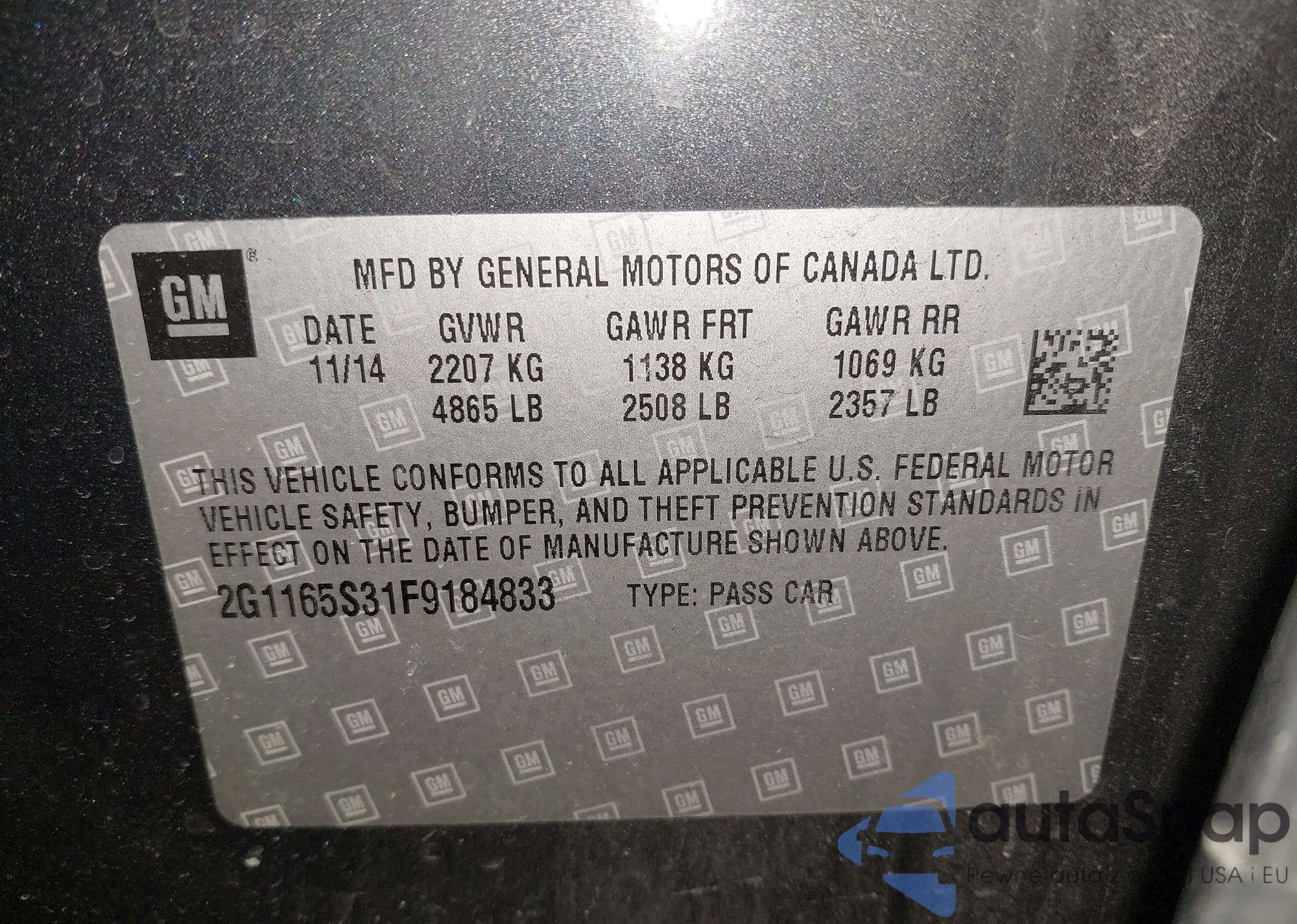 VIN: 2G1165S31F9184833